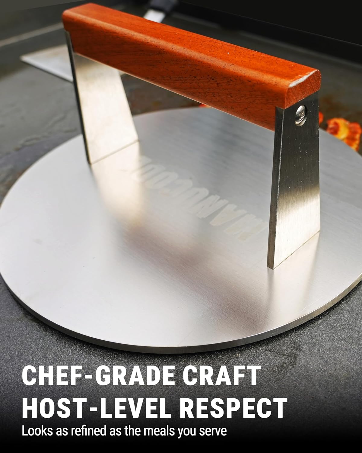 - BEYOND SMASHBURGERS, ENHANCE EVERY DISH: Our heavy-duty grill press ensures food stays close to the heat, cooking evenly and boosting flavor development, especially in protein-rich foods like steak, bacon, chicken, and fish