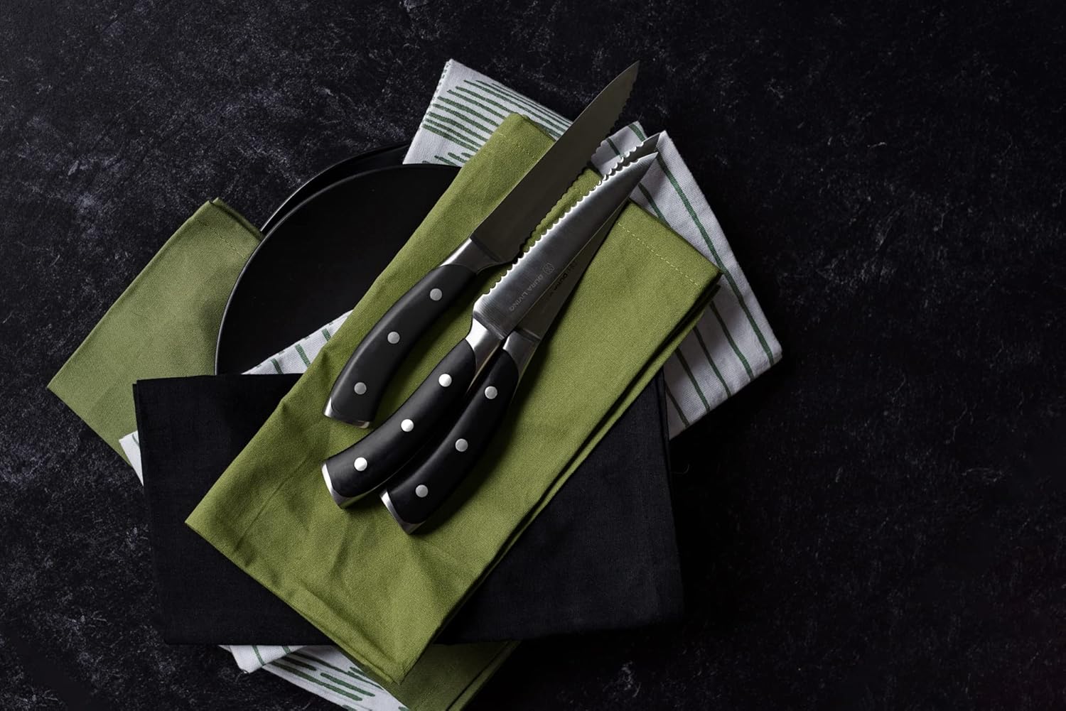 - Stylish and Rust-Resistant: The sleek, modern design with black handles adds sophistication to your table, while the rust-resistant blades ensure they remain in top condition for years.