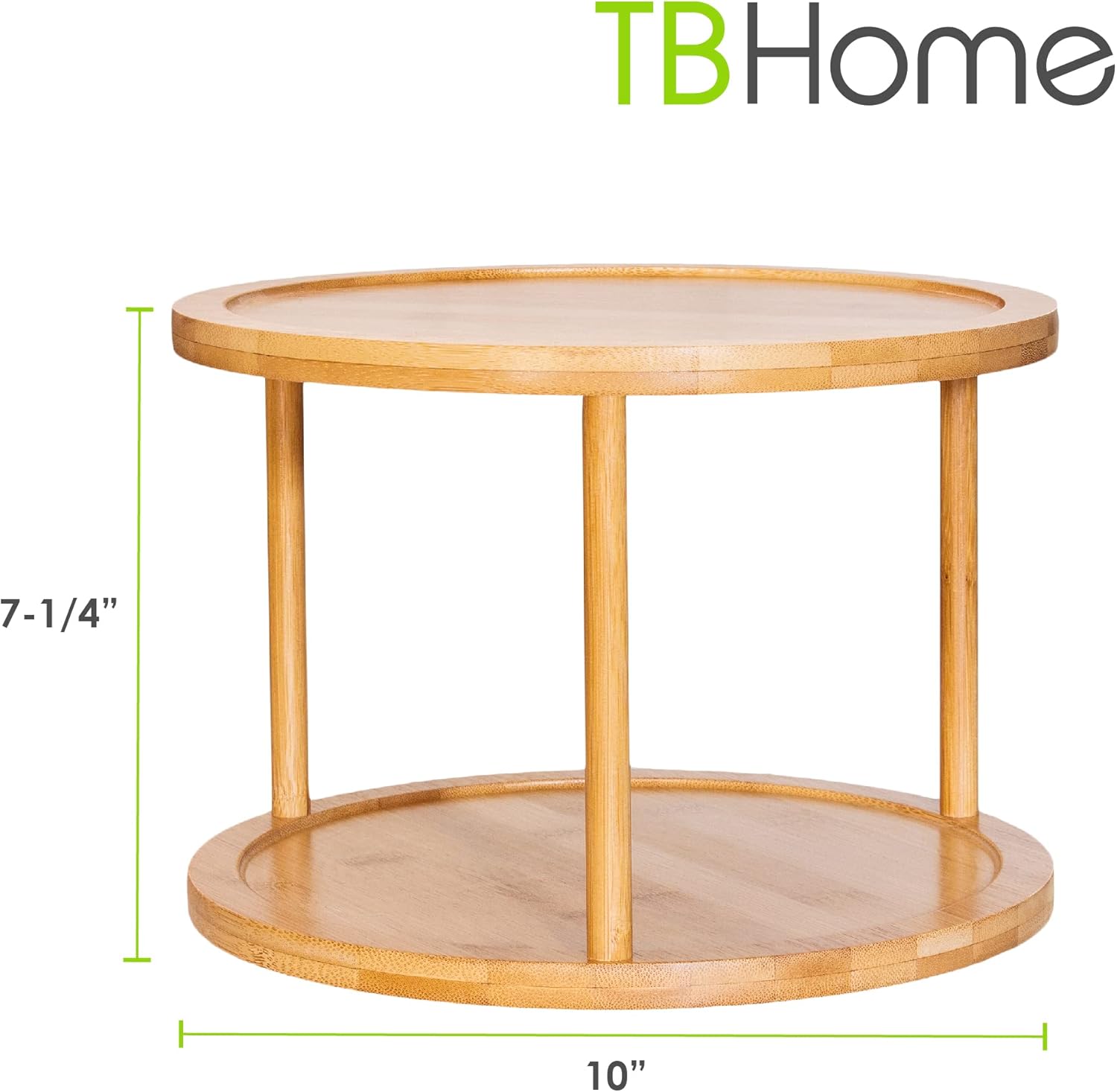 Two-Tier Bamboo Wood Lazy Susan Organizer Kitchen Turntable for Cabinet, Table or Pantry Organization