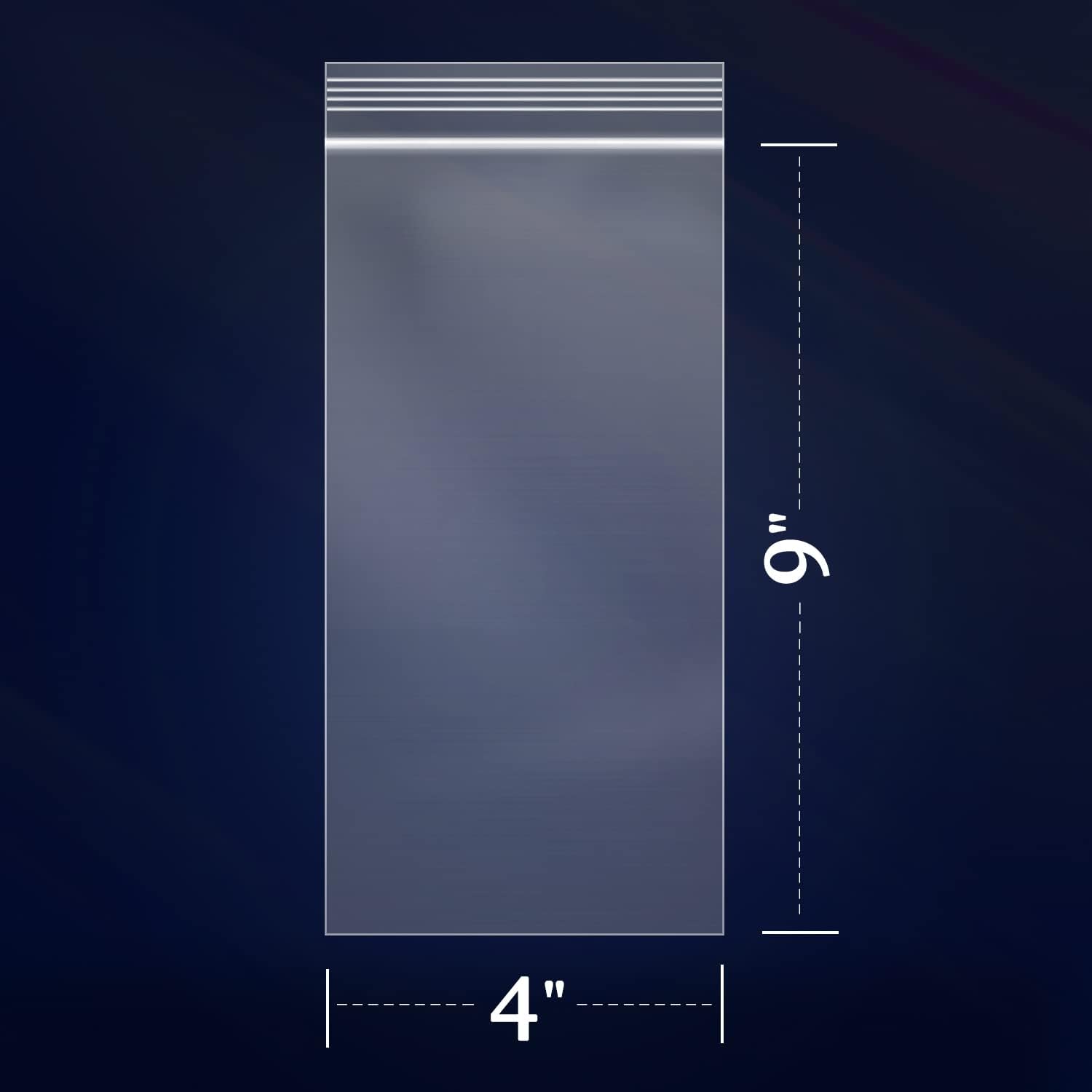 - [Specifications]: 200 PCS - 4" x 9"(Excludes Glue Flap) Resealable Zip Poly Bags - Self Sealing. 2 Mil Thickness.