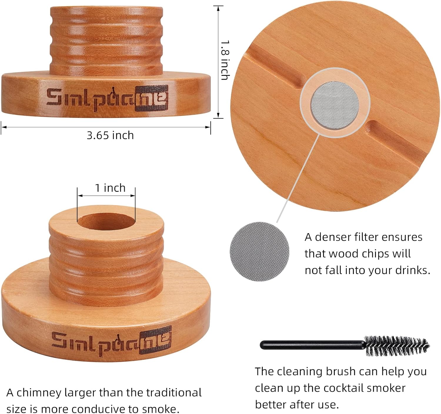 - 【Easy to use】 The smoker is made of natural cherry wood, and the improved design of the enlarged chimney can fill your glass with thick smoke within 10 seconds and give off a strong flavor. And we also included an instruction manual and graphic explanation, even if you are a beginner, as long as you have it, you can easily become a professional bartender.