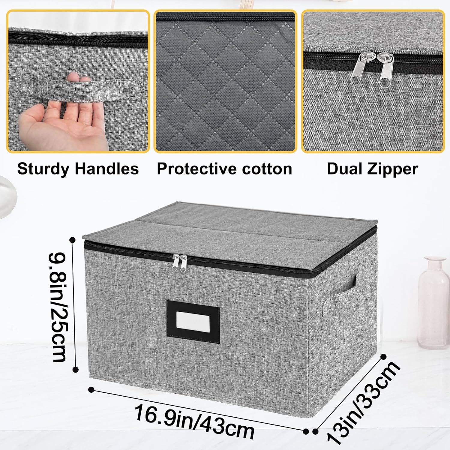 - đșăConvenient Design for CrystalăThe labels on the storage for glassware can help you easily identify which product inside without opening the case, the hardshell top lid prevents glassware from dust and break, easy to carry and store .The glasses storage box equipped with #5 stainless steel zippers which are hard to be broken,and zippered closures to protect from dust.two-way zippers allow it to easily slide along the colsure when in use.