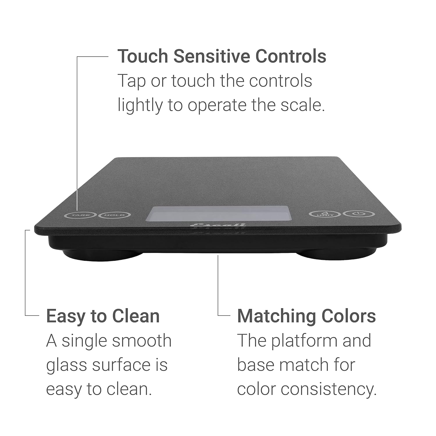 Escali Arti Glass Food Scale Digital Countertop Kitchen, Baking and Cooking Scale with Nutrition and Calorie Counter, 15-Pound Capacity, 9" x 6.5" x .75", Black