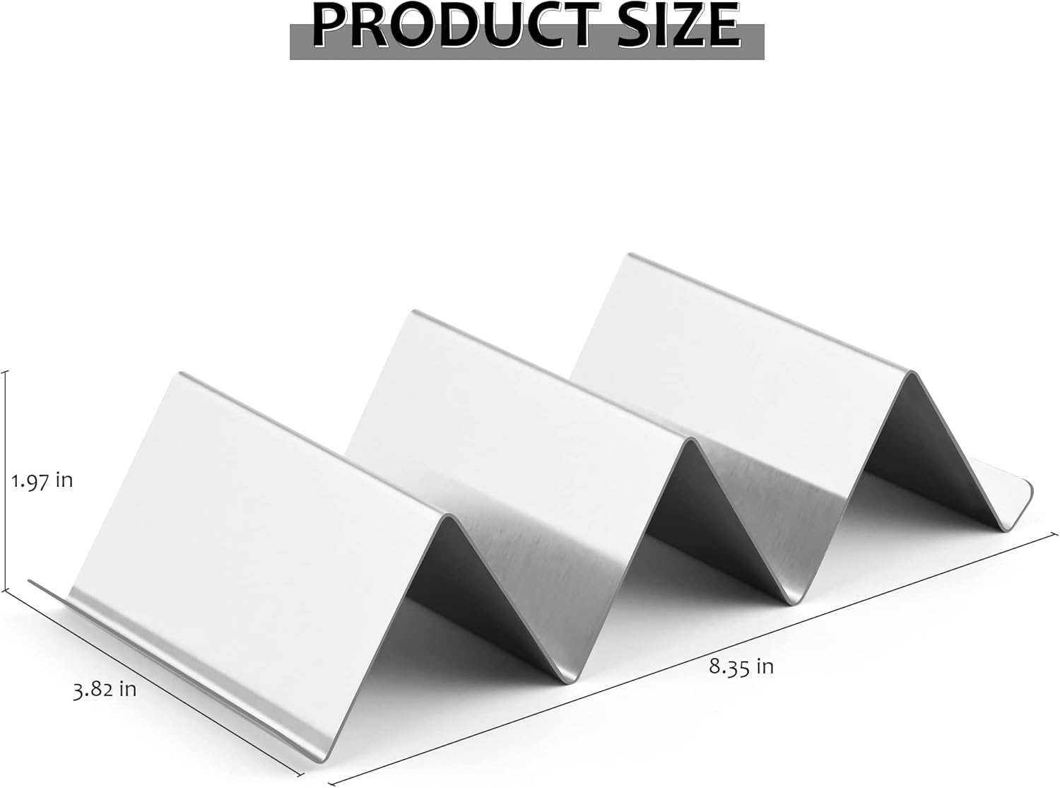 - The Tacos Holder with W pattern on the taco stand allows you to serve three tacos on one side or flip it over for two. <br>The size is 8.35 x 3.82 x 1.97 Inches, it can holder big or small tacos.