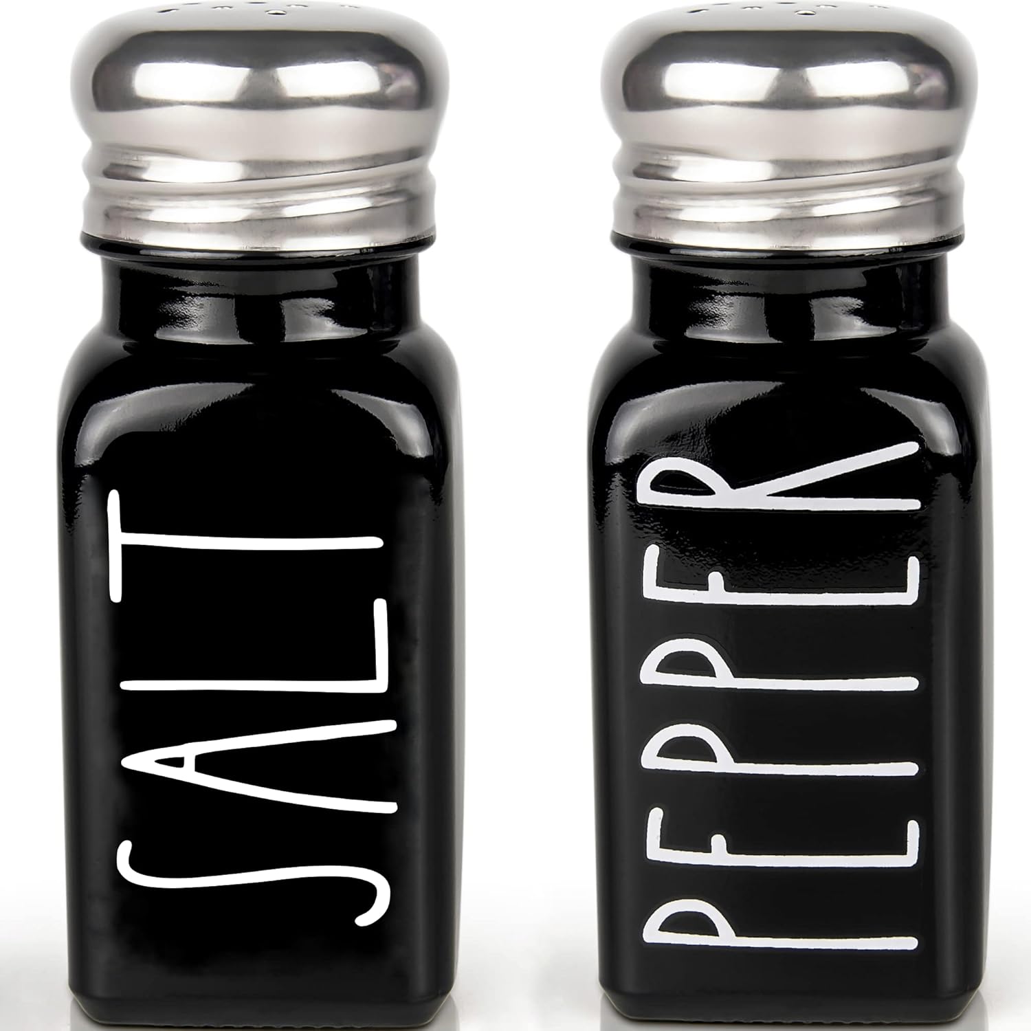- SUPER CUTE FARMHOUSE DESIGN - Charm your friends and family with your new cute black salt and pepper shakers. Each spice shaker is crafted from premium glass and fits perfectly with any black kitchen decor, farmhouse decor, or black decor. Protected by U.S. Design Patent D1050816.