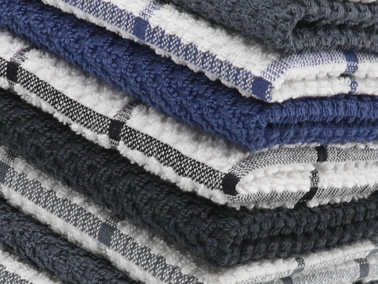 Cotton Grid Dish Cloths, Terry Cleaning Rags, 12 x 12 Inches, Light and Soft, Quick Drying Dish Rags, 8pc/Set (Black Multi)