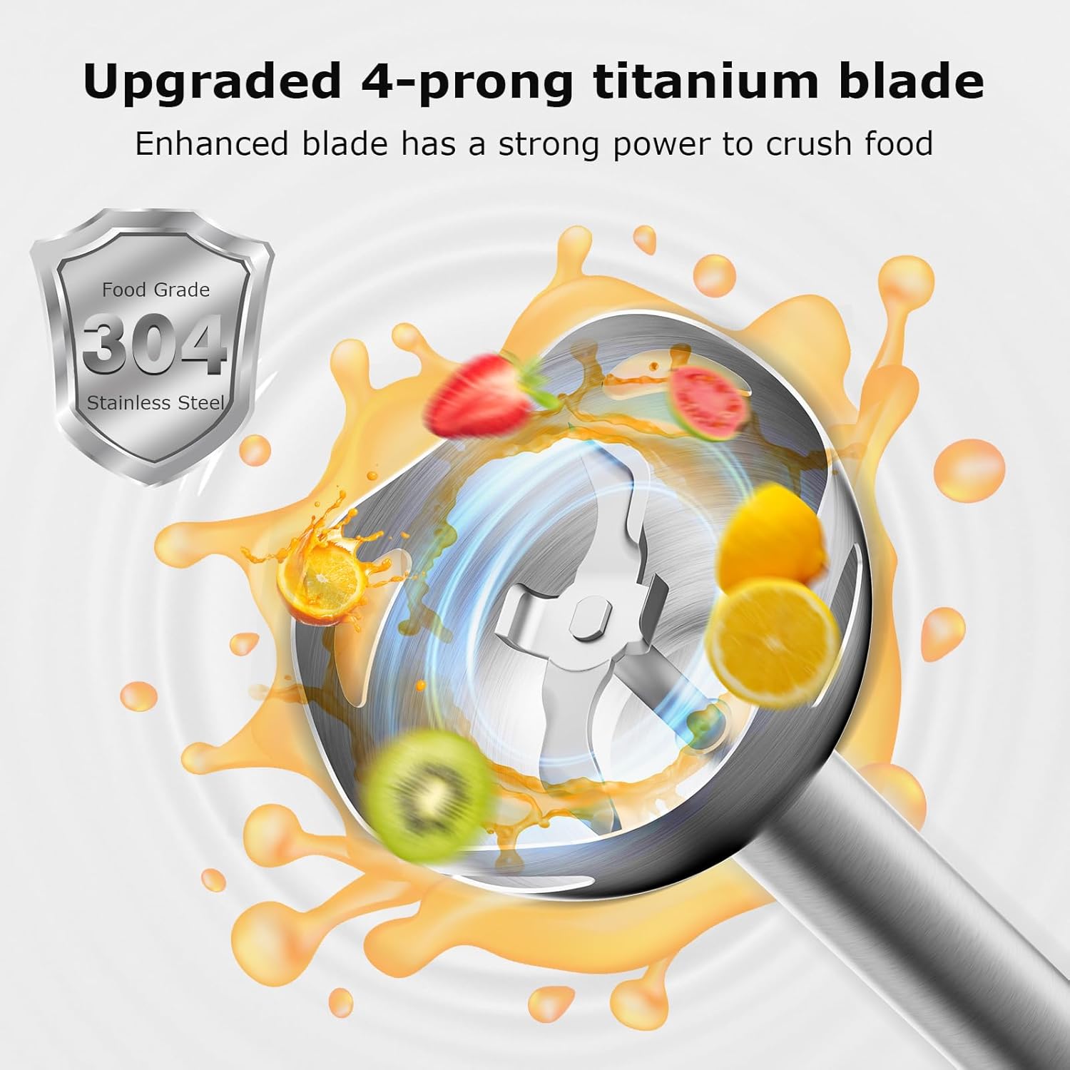 Bonsenkitchen Hand Blender, Immersion Blender with 2 Mixing Speed, Electric Handheld Mixer Portable Stick Mixer with Stainless Steel Blades for Soup, Smoothie, Puree, Baby Food