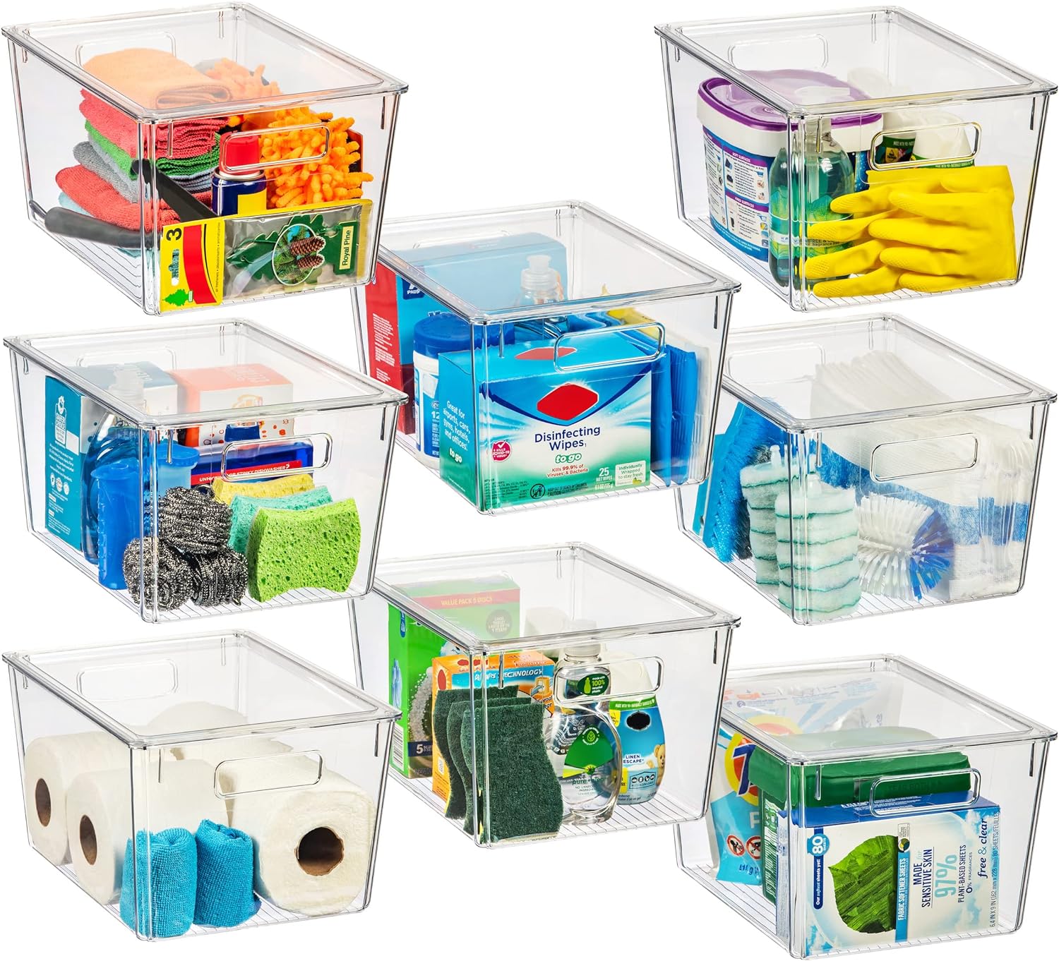 - PORTABLE & STACKABLE – Built-in, easy-grip side handles make it easy to transport from place to place. They also come with lids to help organize. These plastic storage bins are perfect for pantry organization and storage or kitchen organization. These clear storage bins are great for anywhere in your home.