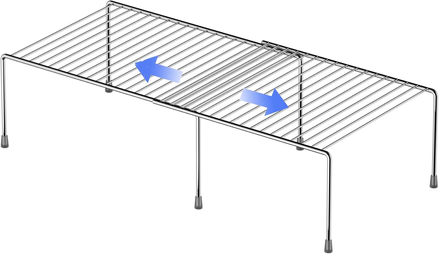 Redrubbit Cabinet Storage Shelf Rack, Expandable Metal Rustproof Kitchen Counter and Cabinet Shelf, Storage Rack Organizer Space Saver for Kitchen, Fridge, Cabinet, Bathroom, Chrome