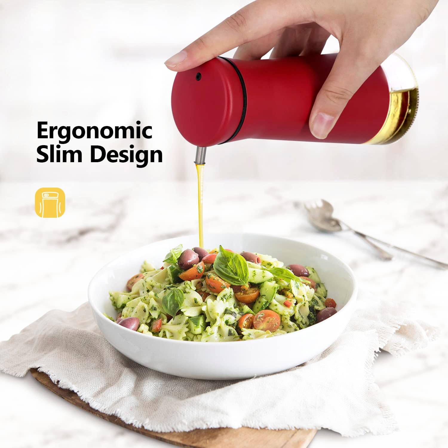- NO-DRIP OIL BOTTLE: Thanks to the functional design of the oil mouth, no more dripping from the mouth. The non-drip feature of the oil dispenser ensures that your kitchen stays clean.