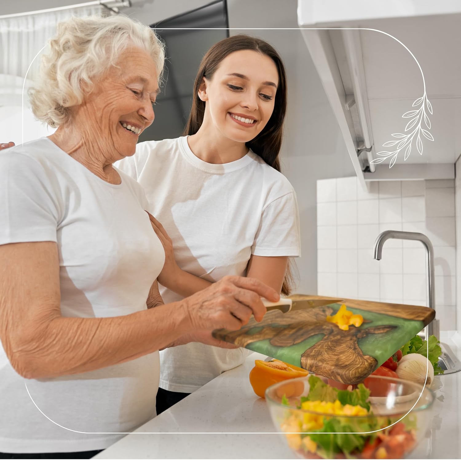 - Versatile And Elegant: You may use both sides for serving cheese, fruit and meat as an elegant and luxury olive wood charcuterie board or resin cutting board. The natural beauty of the olive grain makes these cheese charcuterie boards multifunctional for wine plates, hors d'oeuvres. Olive wood kitchen serving platter is gracious for serving, steak, pizza, fruits, sushi, bread and other appetizers. Our handmade large wooden cutting boards for kitchen make a heart-warming centrepiece on any dining table.
