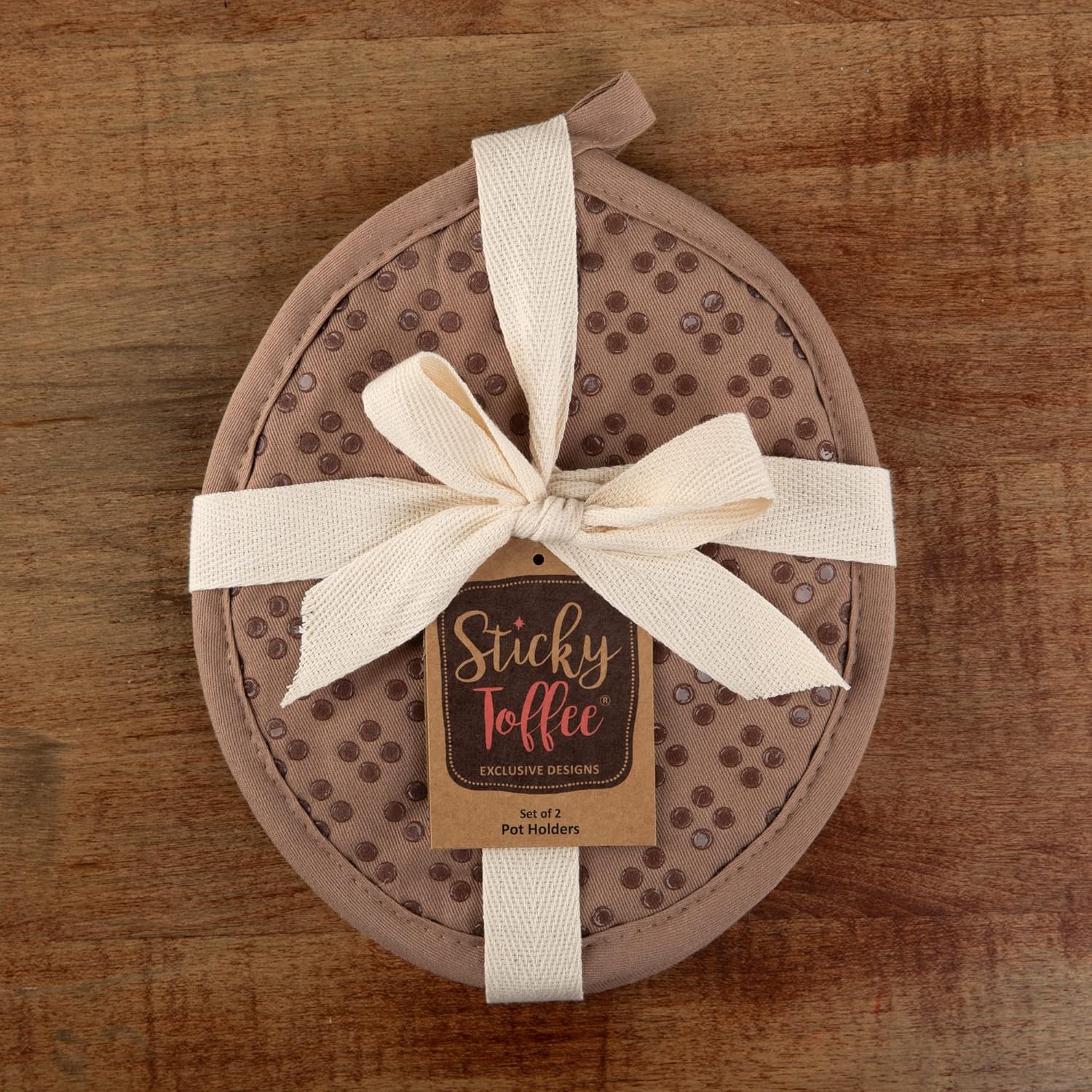 Sticky Toffee Silicone Pot Holders Set of 2, Brown, Heat Resistant to 500°F, Non-Slip Oven Hot Pads with Oeko-Tex Cotton Shell, 7 x 9 in