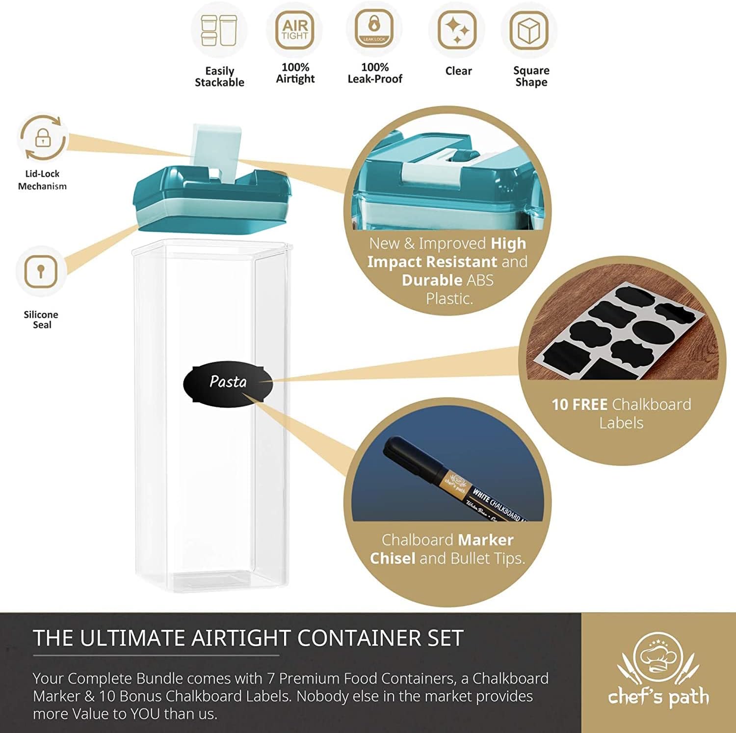 Airtight Food Storage Containers for Pantry Organization & Storage - 7 PC Pantry Organizer Plastic Containers for Food with Flip Lock Lids - Stackable Sugar Container & Food Storage Canisters (Teal)