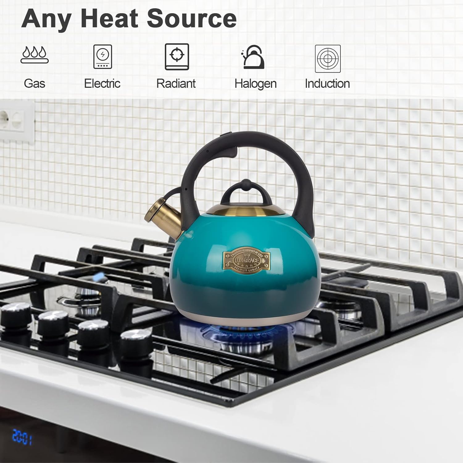 - Perfect Whistling Sound of Teakettle: This tea kettle for stovetop has a tight-fitting lid keeps steam in the hot tea kettle for rapid heating, and realse pleasant whistles sound when water reaches a boil, Loud enough to alarm you when you busy in the next room.