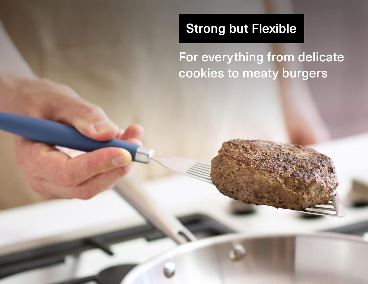 - PRECISION IN EVERY FLIP: This wide-slotted turner is perfect for cooking a variety of meals. Whether it's delicate eggs, sizzling fish, meaty burgers, or fluffy pancakes it allows you to fry and flip with ease, ensuring your creations are cooked just the way you desire.