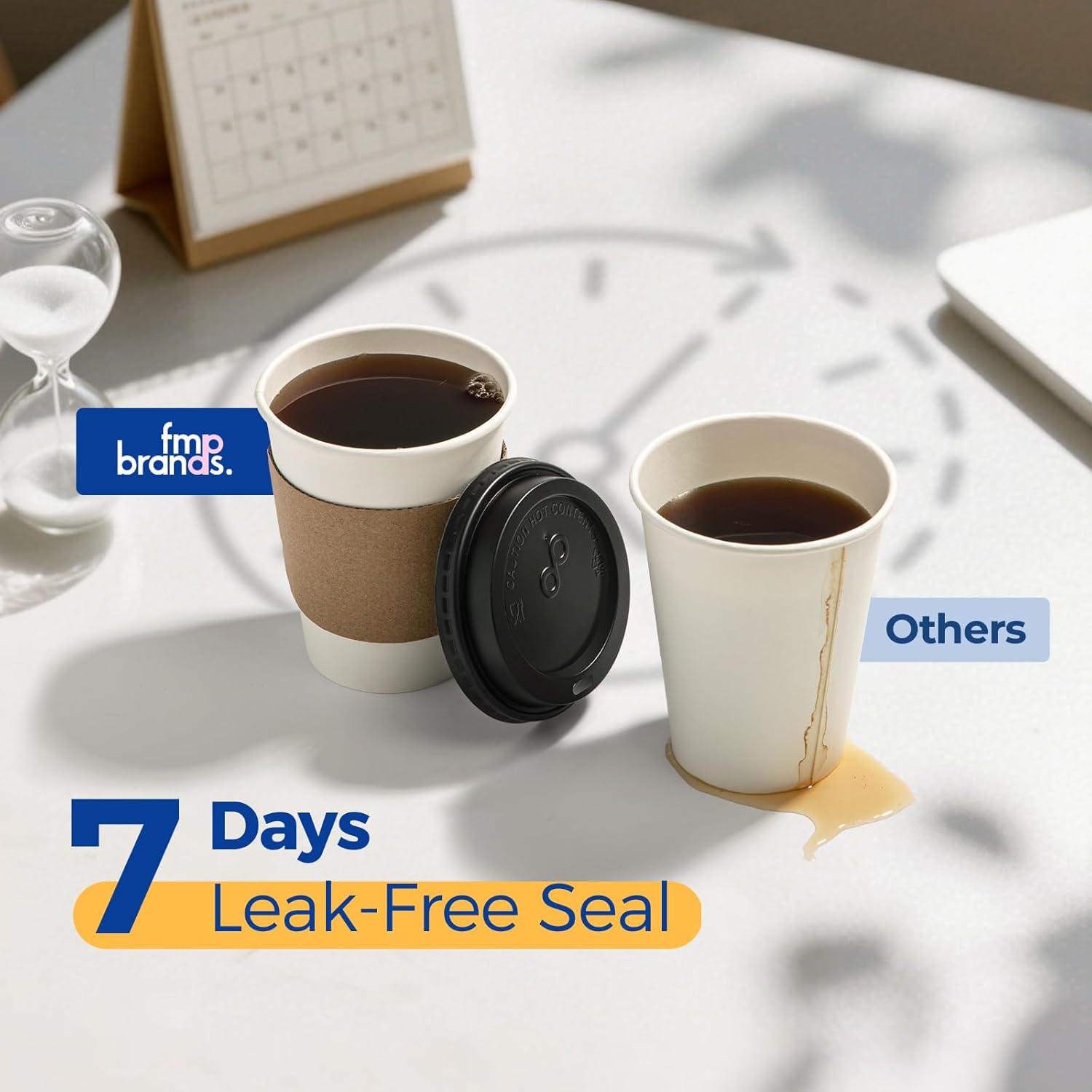 - Leak-Free for Over 7 Days: This set includes paper cups, lids, sleeves. Made from recyclable paper, these durable coffee cups keep your beverage warm while ensuring your hands stay comfortably cool.