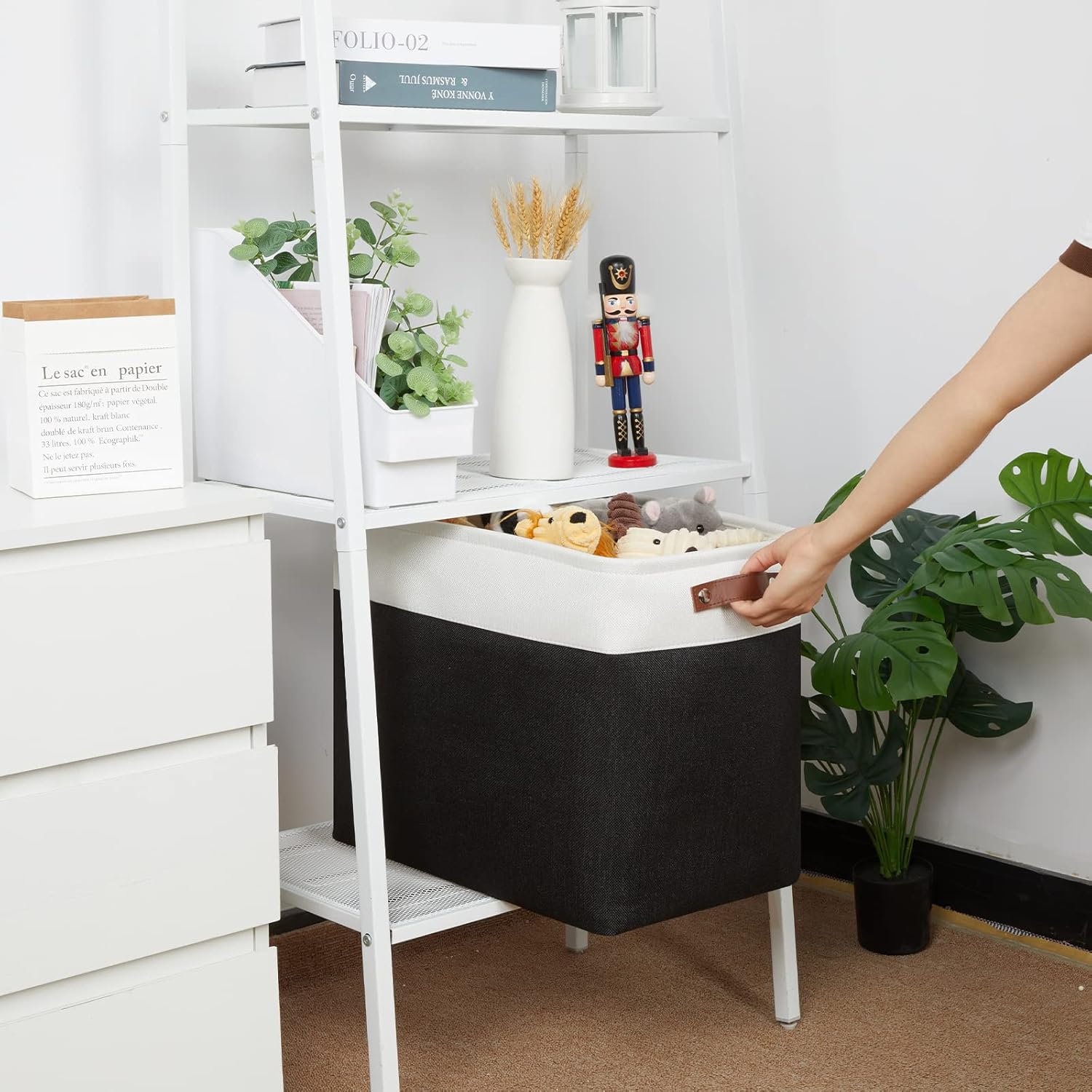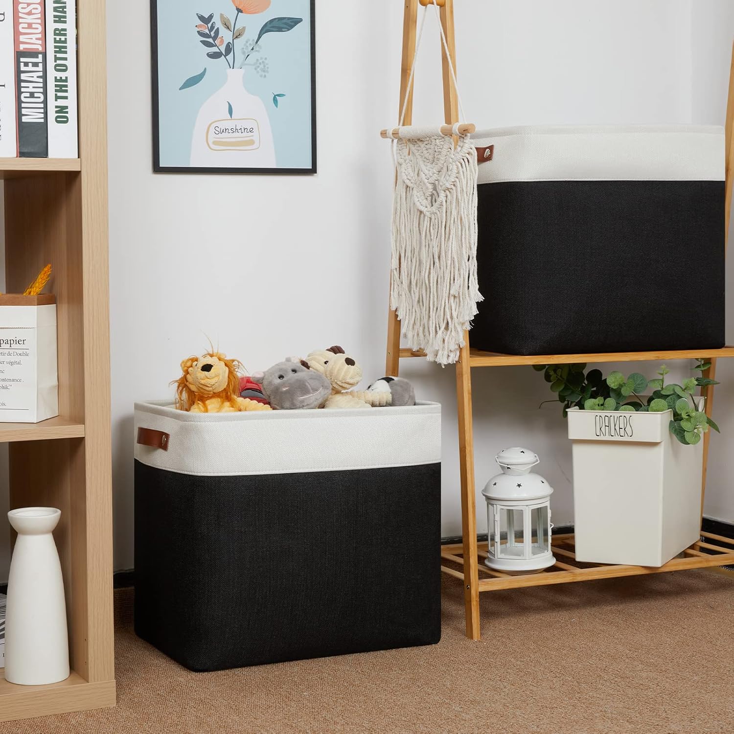 HNZIGE Baskets Shelf Baskets for Clothes 2 Pack Large Storage Bins Fabric Baskets for Organizing, Collapsible Rectangular Canvas Linen Storage Basket with Handles for Storage Closet (White&Black)
