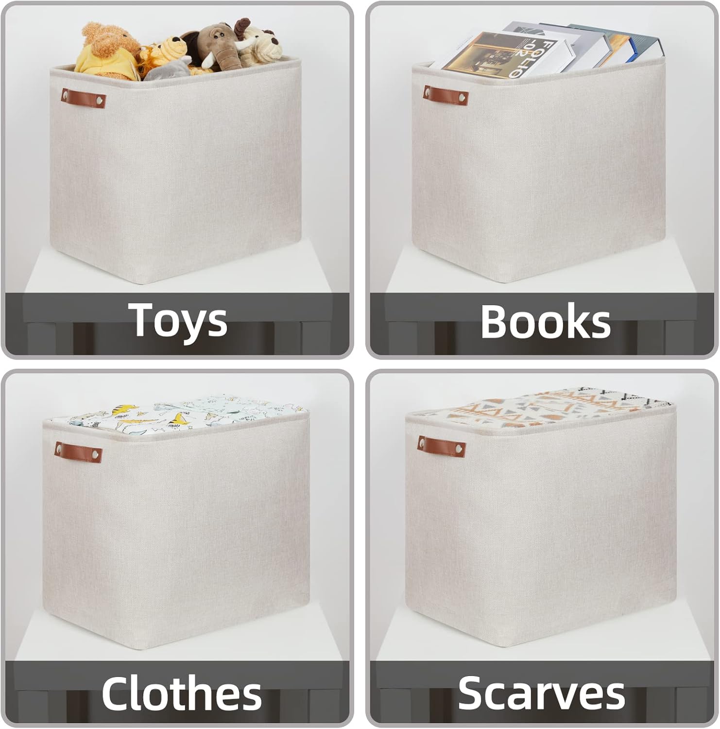 - 【Multi-purpose】Sturdy large fabric storage bins provide a solution to many storage needs: organizing and storing baby products, clothes, shoes, kid’s toys, pet products, shelf baskets for organizing closet, toiletry storage, laundry clothes, towel, blanket, bedsheets, sports gears, many other uses