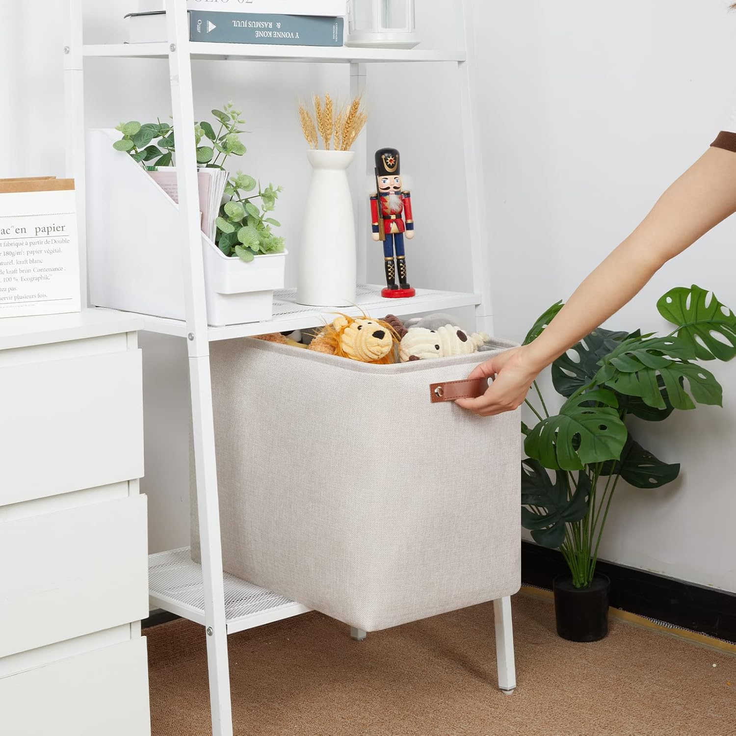 - 【Leather Handles&Premium Fabric】 HNZIGE fabric storage bins with a sturdy metal rod frame around the top to keep the rectangular storage bins' shape. These fabric baskets are constructed of durable and attractive linen & EVA with linen interior lining. The sturdy leather handles make tall canvas storage bins easy to carry or pull off and out of shelves.