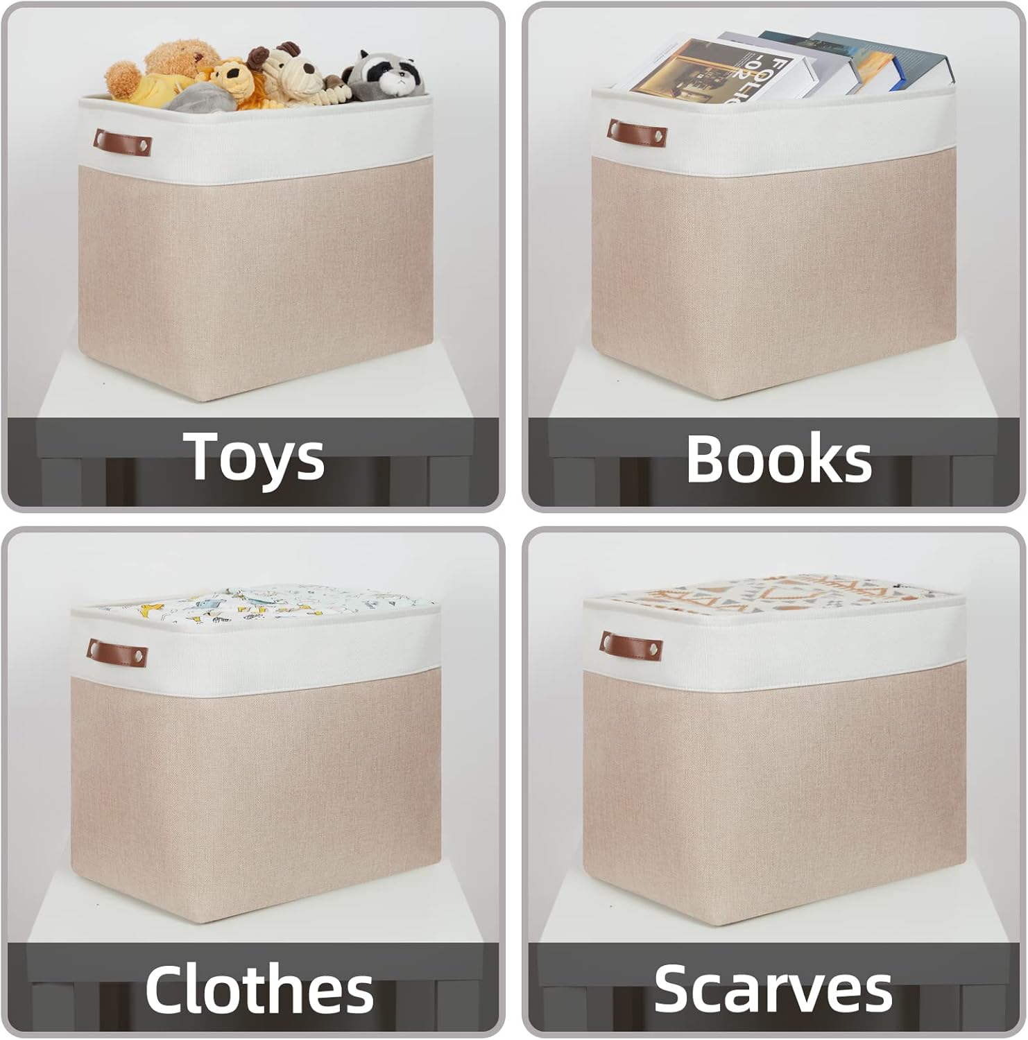 - 【Multi-purpose】Sturdy large fabric storage bins provide a solution to many storage needs: organizing and storing baby products, clothes, shoes, kid’s toys, pet products, shelf baskets for organizing closet, toiletry storage, laundry clothes, towel, blanket, bedsheets, sports gears, many other uses