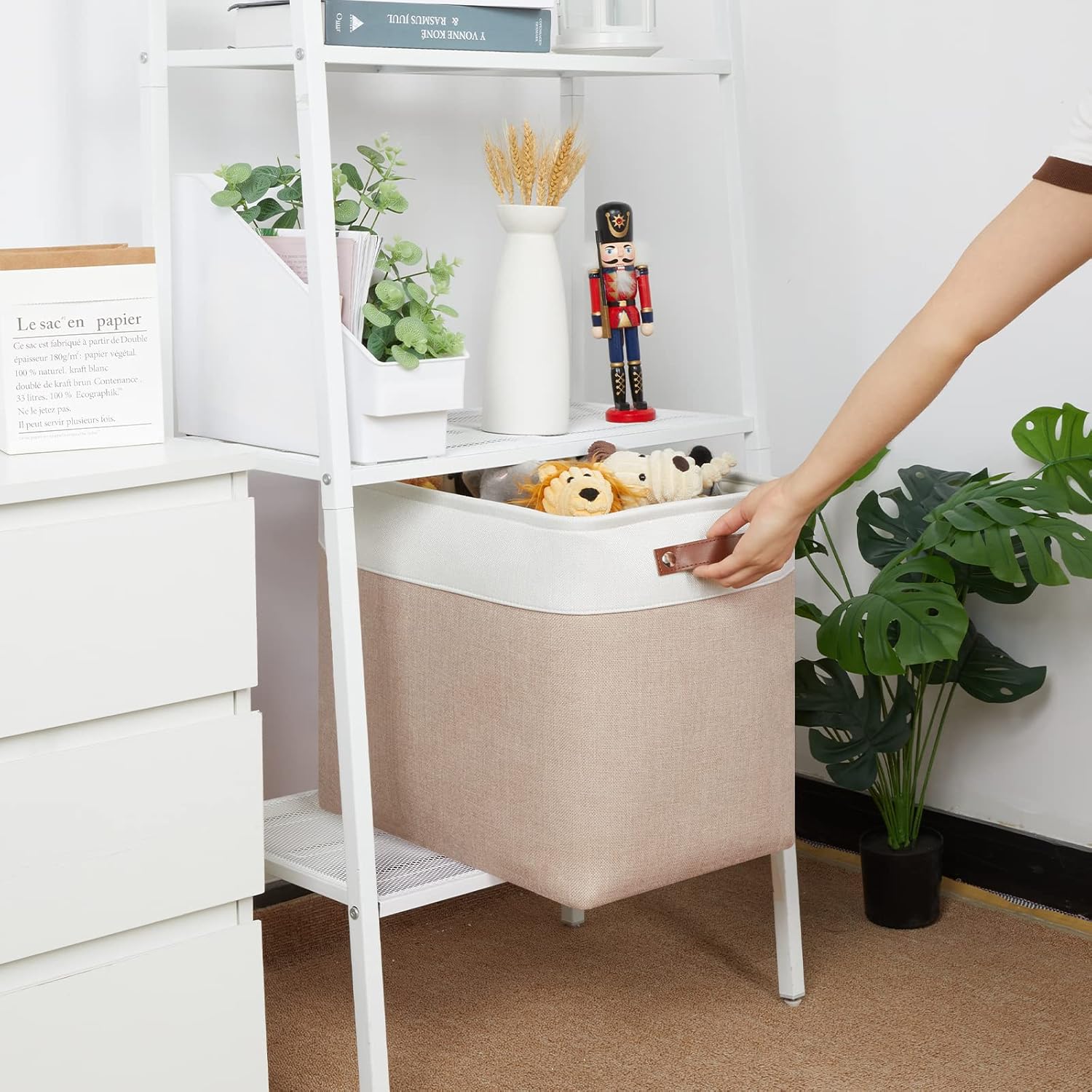 - 【Leather Handles&Premium Fabric】 HNZIGE fabric storage bins with a sturdy metal rod frame around the top to keep the rectangular storage bins' shape. These fabric baskets are constructed of durable and attractive linen & EVA with linen interior lining. The sturdy leather handles make tall canvas storage bins easy to carry or pull off and out of shelves.