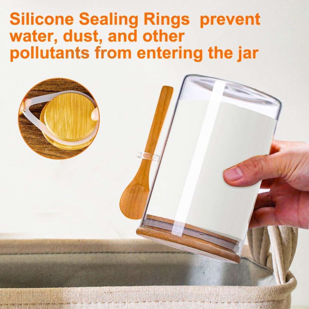 - [Good Air-Tightness] Bamboo lid with silicone sealing loop creates an airtight and moisture-proof environment to keep your food fresh. Great for wet or dry foods, baking goods , cookies, cereals, tea leaves and spices or other ingredients.