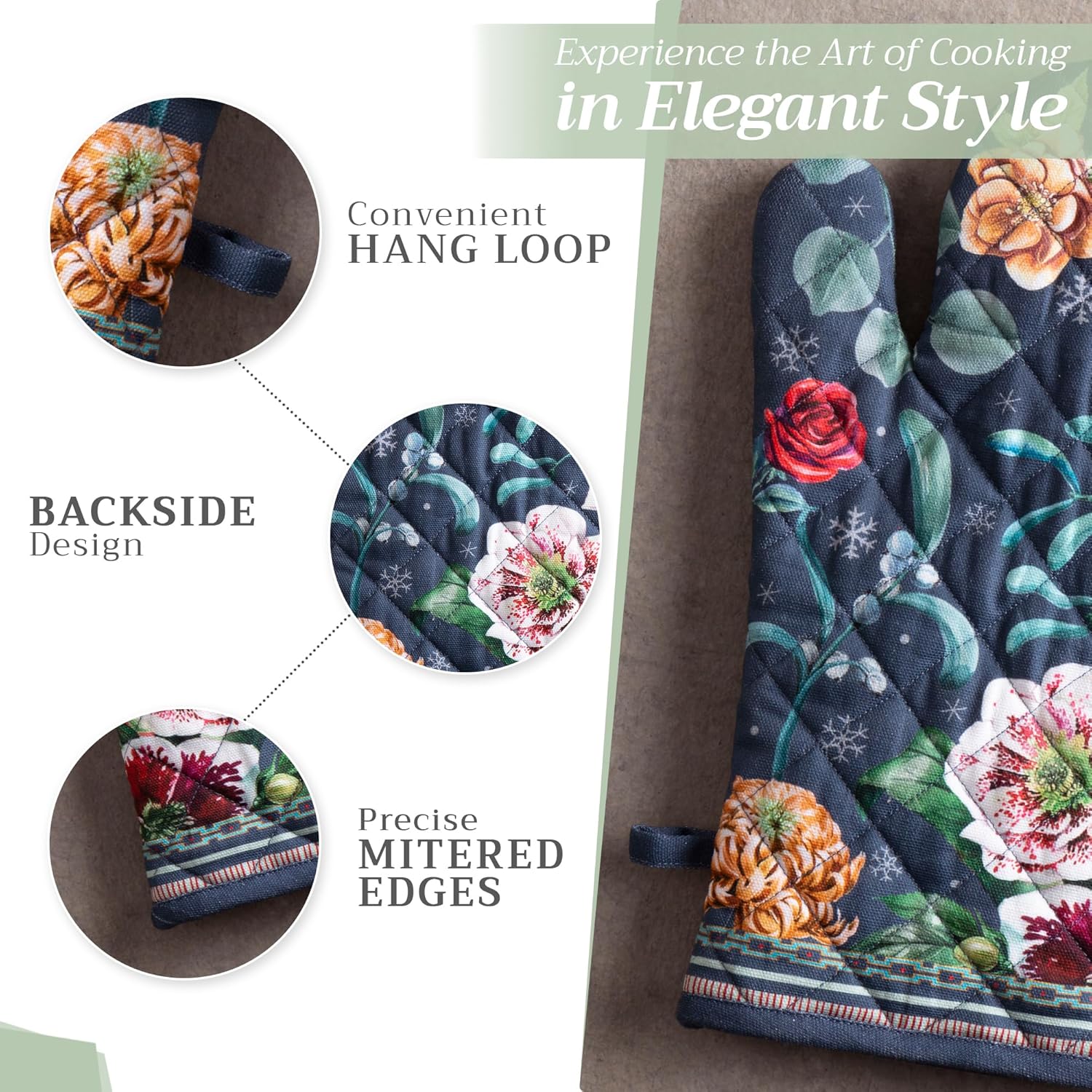 - 100% Quilted cotton: Crafted from thick, durable quilted cotton, this heat resistant oven mitt provides a soft feel, safe handling, and lasting performance. A must-have kitchen accessory for everyday cooking, roasting, or baking tasks