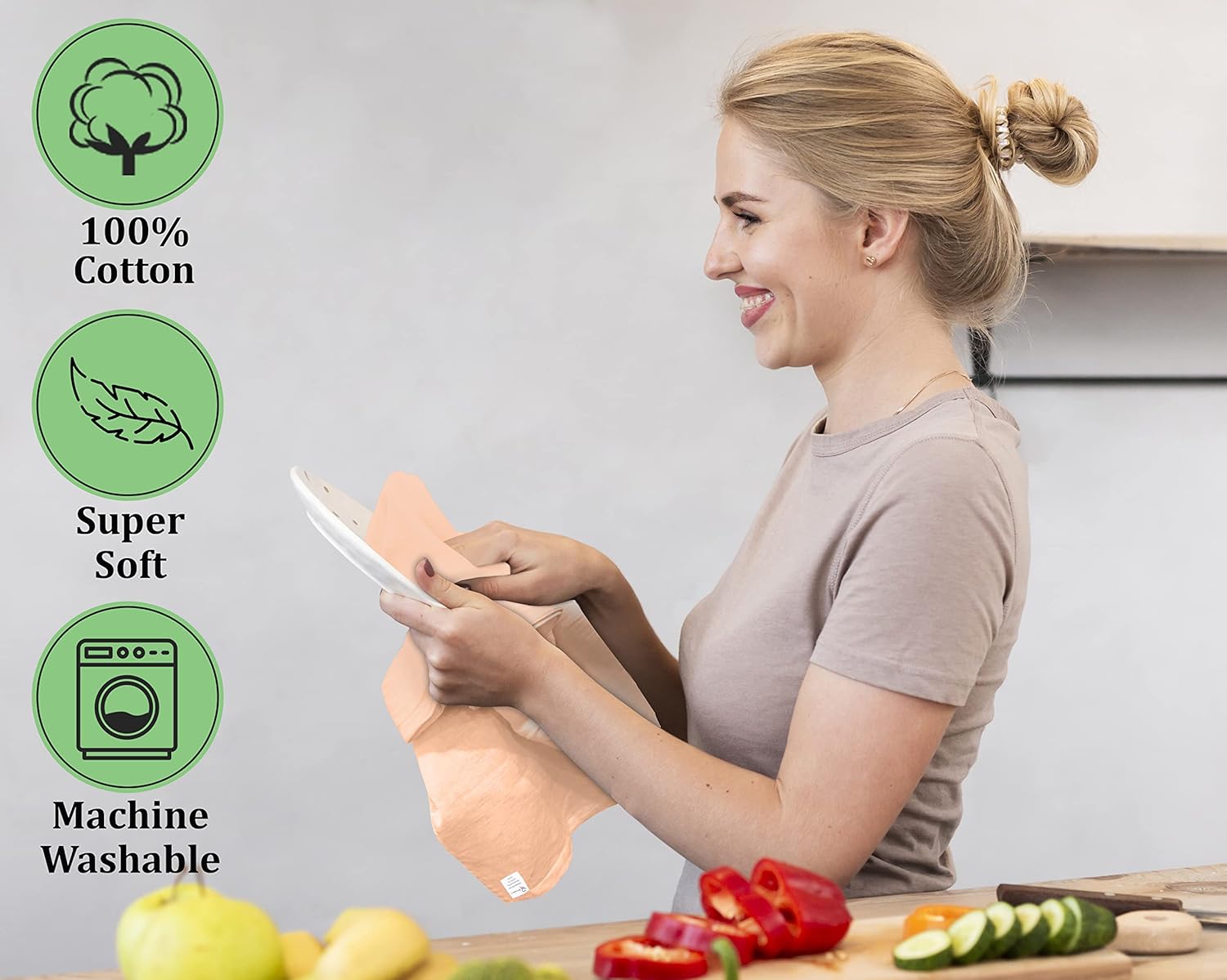 RUVANTI Flour Sack Towels 6 Pack 28x28 Inch, 100% Cotton Tea Towel, Reusable, Machine Washable, Absorbent BarTowels - Dish Cloth Perfect for Drying Dishes & Cleaning - Peach