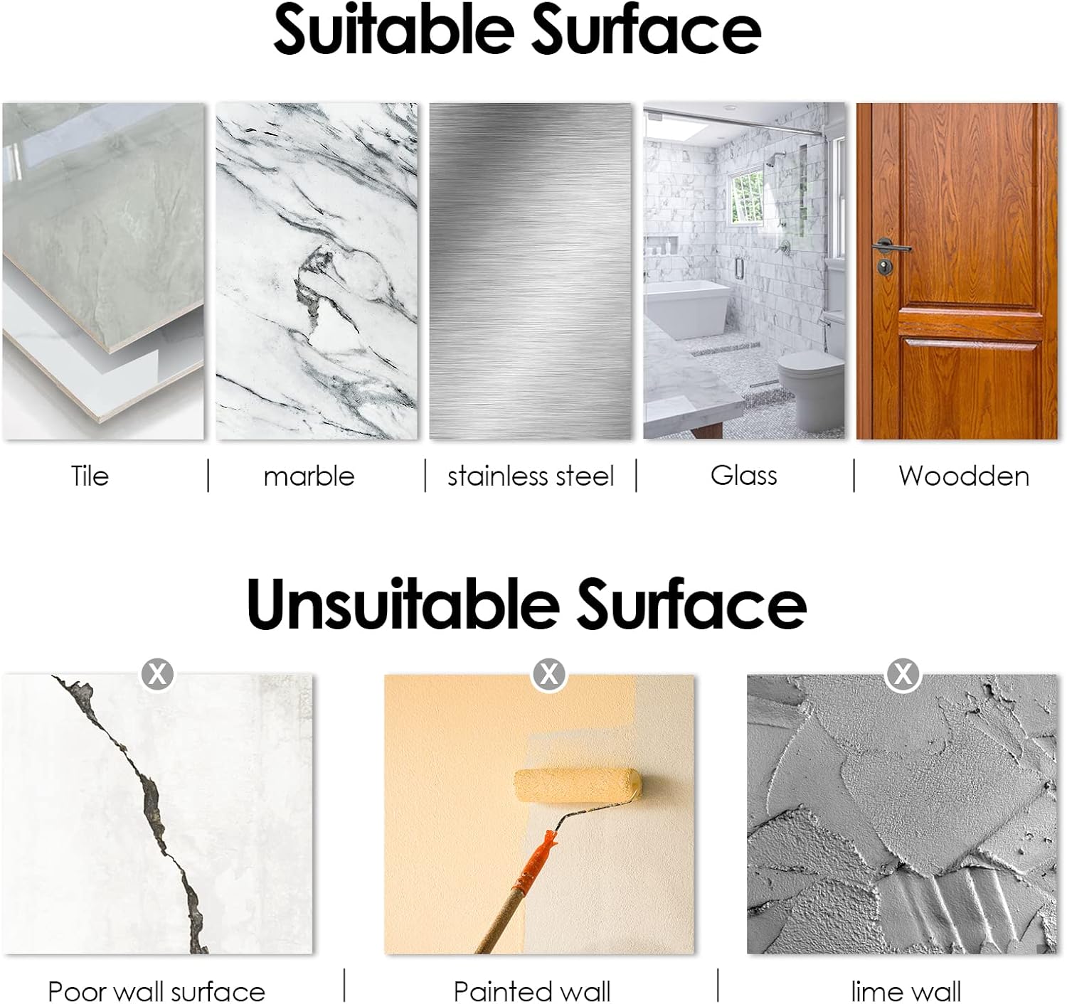 - No Drilling Required – Simple, Secure, and Damage-Free. Forget about the hassle of drilling holes or using nails and screws. Our kitchen hook rack can be installed without any tools, making it perfect for those who want a quick, easy, and damage-free solution. It attaches securely to marble, mirrors, glass, and other smooth surfaces, holding up to 10 lbs. You can have a clutter-free kitchen without the stress of installation