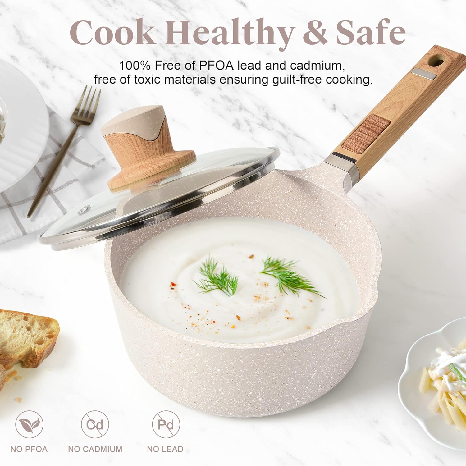 - NON-TOXIC COOKWARE: cook with confidence knowing our kitchen cookware set is free from harmful materials such as PFOA, PTFE, PFAs, lead, cadmium, and toxic metals. Embrace healthier cooking at higher temperatures without compromising on safety