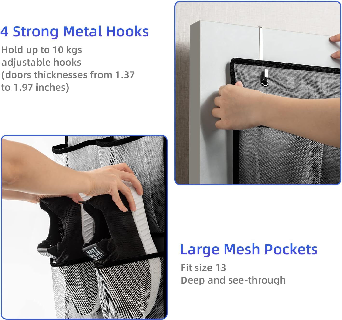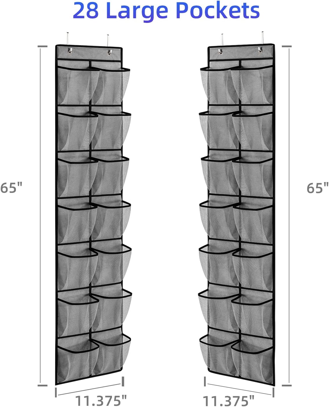- â»ă28 Large Deep Pockets in Total ăEach door shoe organizer has 14 pockets , 28 Pockets in total. can hang 14 pairs of shoes at least and holding the shoes of your whole family.