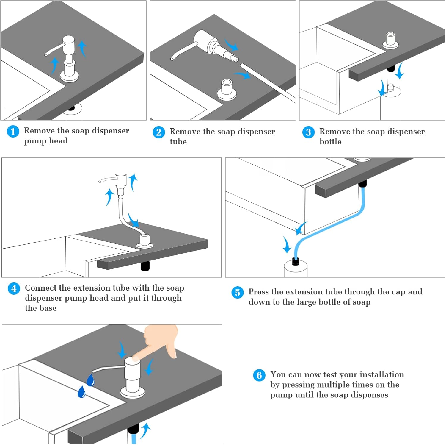 - EASY TO INSTALLATION: You will find that our Extension Tube is simple to install and use, it only takes moments to fit the tube into your Kitchen Sink Soap Dispenser. If you do not know how to install, check the installation manual or contact us, we will try our best to help you.