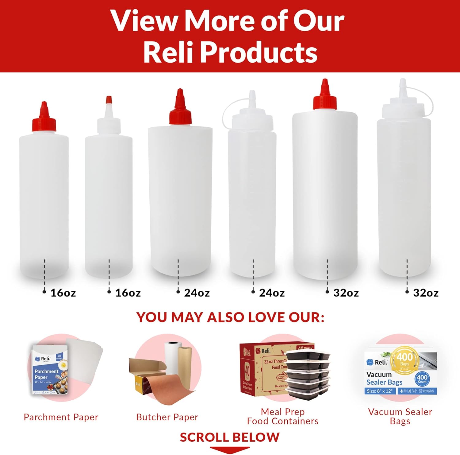 Reli. Plastic Squeeze Bottles, 24 oz. | 10 Pack | Condiment Squeeze Bottles for Sauces | Clear w/Tethered Caps | 24 Ounce Hot Sauce, Ketchup | Condiments, Olive Oil, Liquids