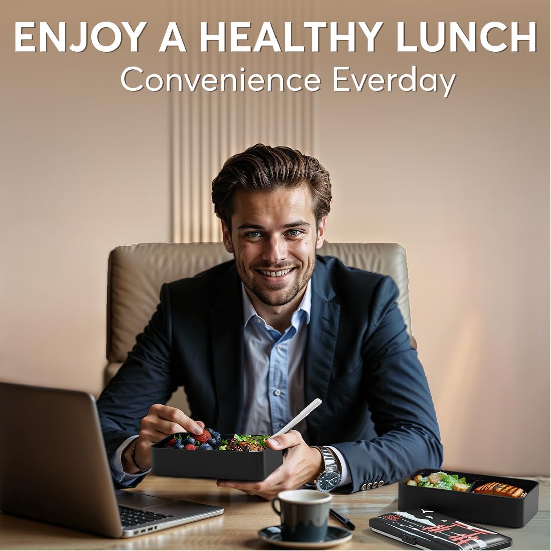- All-in-One Solution: Discover the bento box adult all-in-one, perfect for busy professionals and frequent travelers. The lunch containers for women/men includes 2 movable dividers, 2 sauce jars and a complete utensil set.