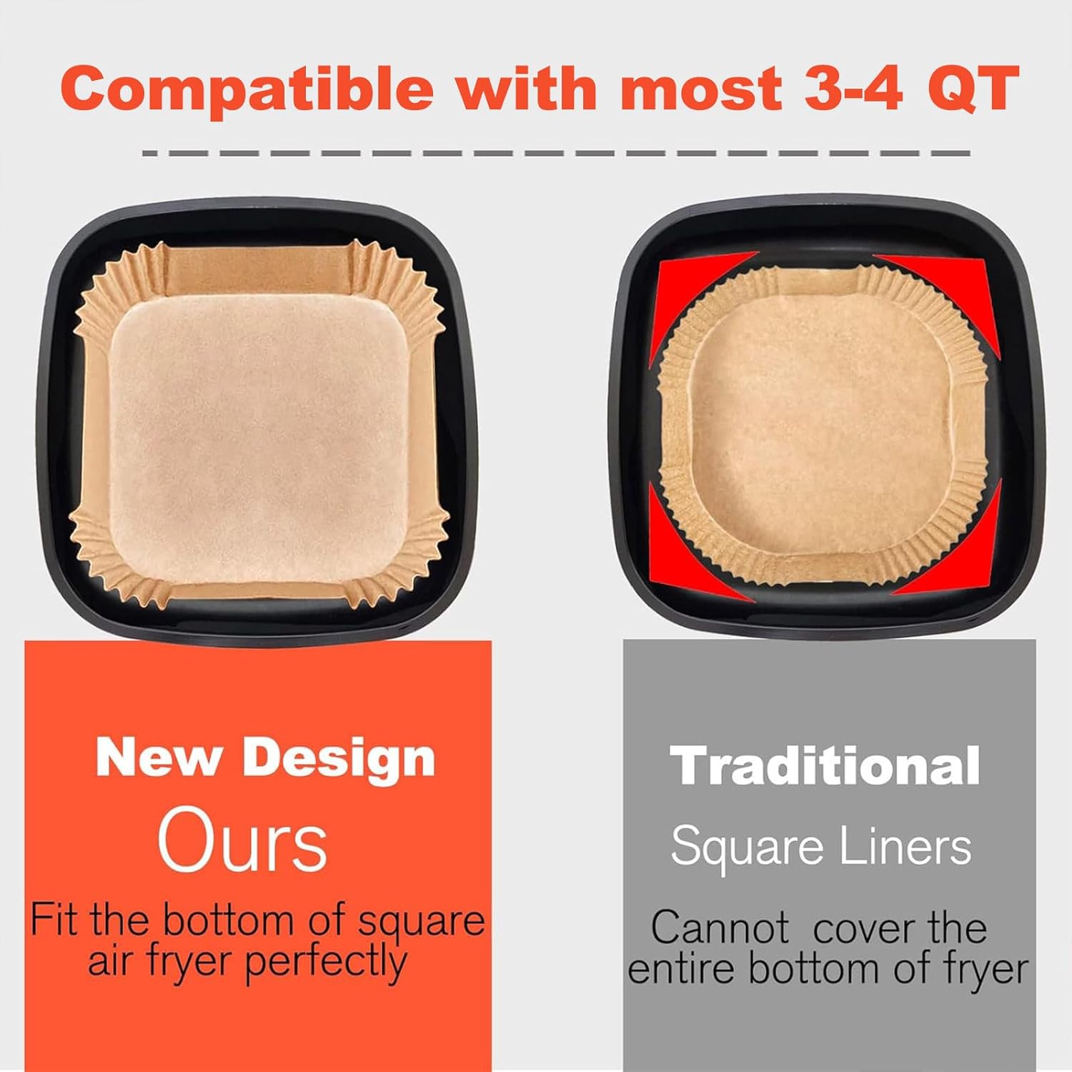 - Perfect Fit For 4-4.5QT Air Fryer: Medium size, 120Pcs, Upper size 8 inches, bottom size 7.1 inches. Compatible with Chefman 4QT air fryer, GreenLife 4.5QT Mechanical Air Fryer, Cuisinart Air Fryer. Fitting size make for a much faster and easier cooking and baking experience in kitchen.