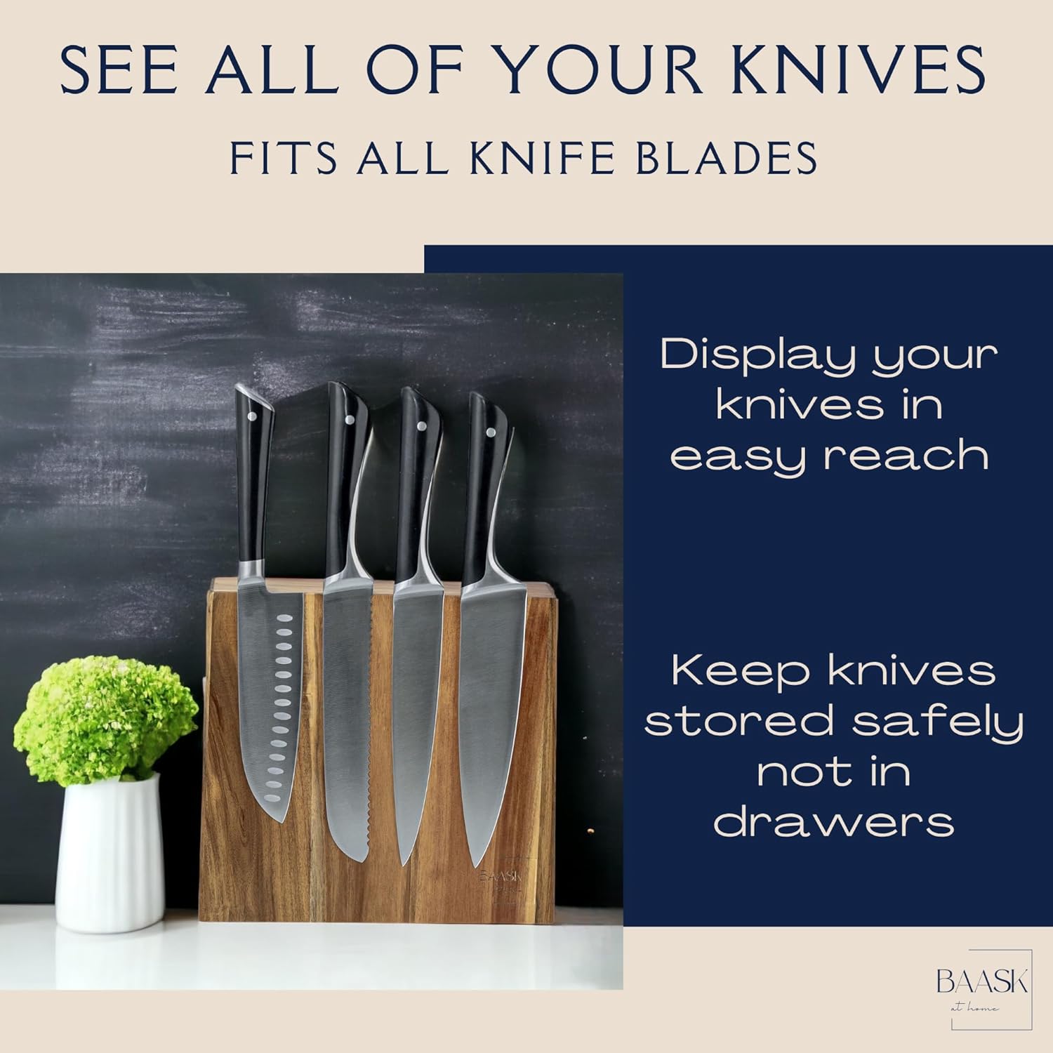 Magnetic Knife Holder, Acacia Wood Double-Sided Magnetic Knife Block - Knife Stand - Strong Magnets - Universal Size - Minimalist Modern Style by BAASK