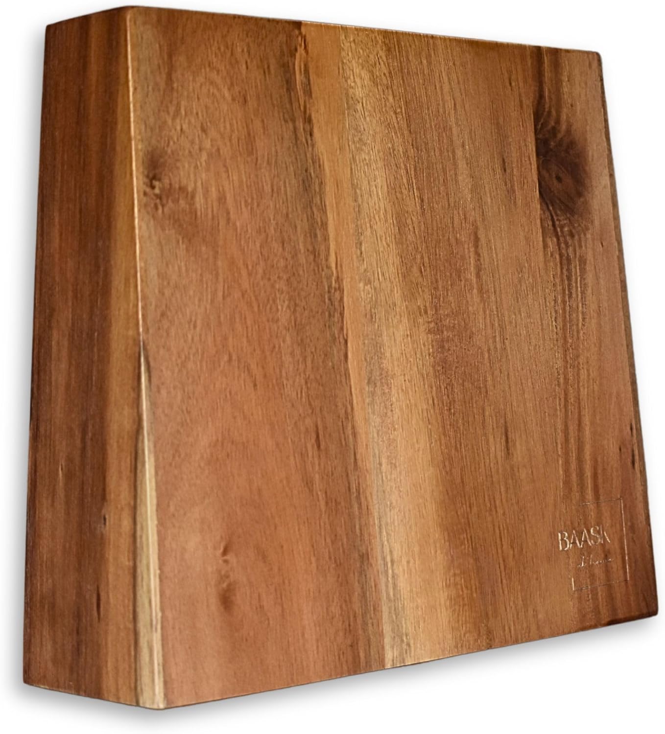 - UPDATE YOUR BENCHTOP WITH NATURAL BEAUTY Crafted from certified sustainable Acacia wood, each hand-finished block features unique grain patterns and a smooth, satin varnish. A minimalist showpiece that makes a thoughtful gift for anyone who loves to cook