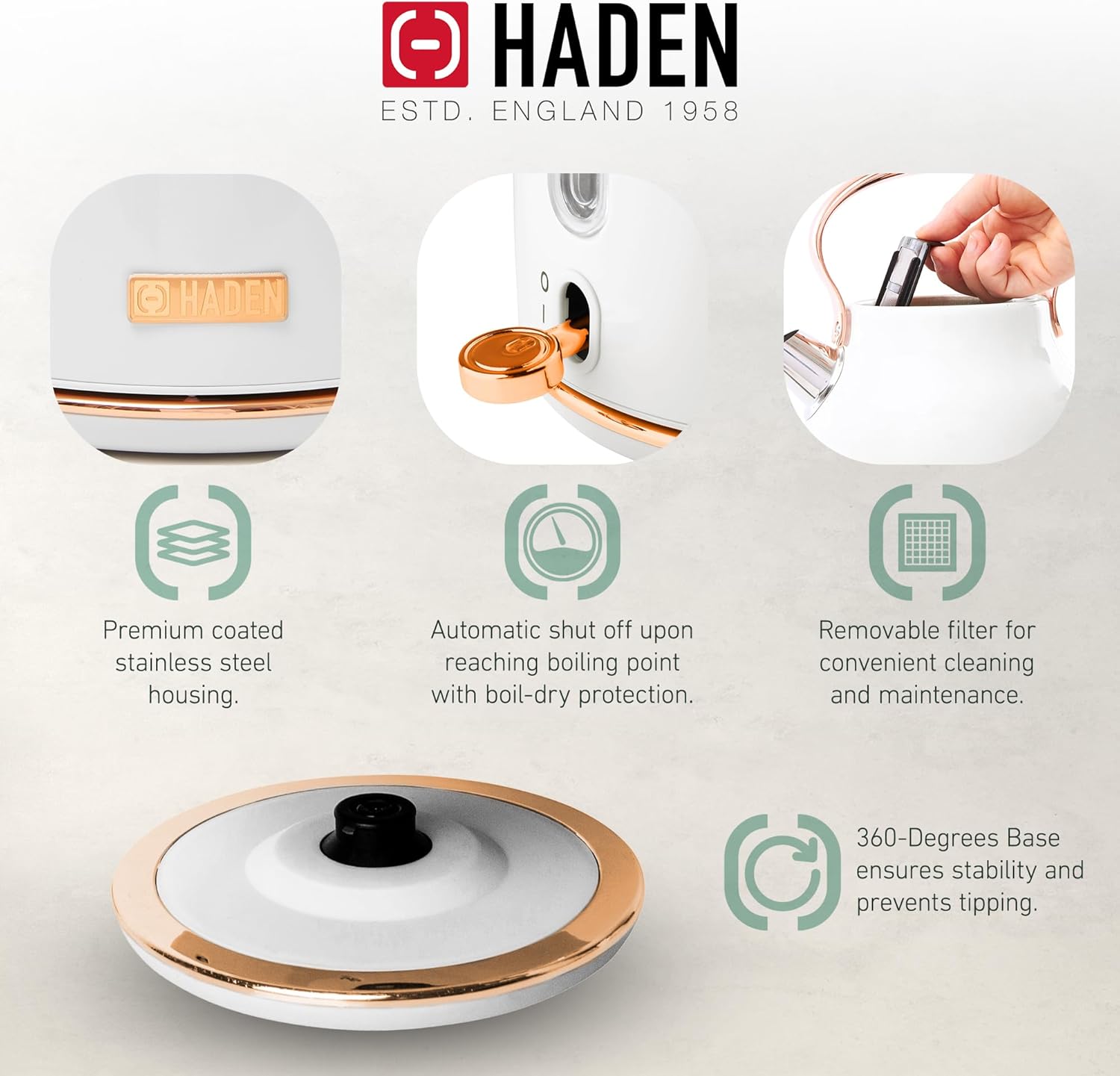 Haden Heritage 1.7 Liter Stainless Steel Electric Kettle, Hot Water Kettle with 360-Degree Base and Auto Shutoff, Ivory & Copper