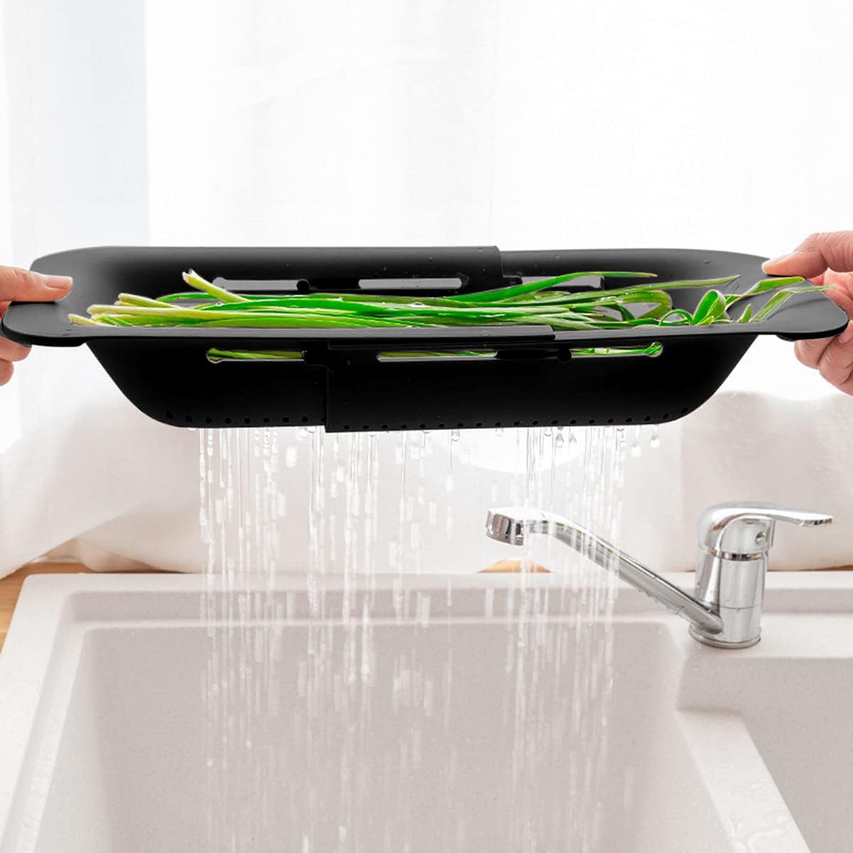 Collapsible Sink Colanders and Strainers Basket Extendable Plastic Fruit Vegetable Strainer Drainer Basket for Kitchen (Length 13.6 inch-18.7 inch) (Black) 6 * 10