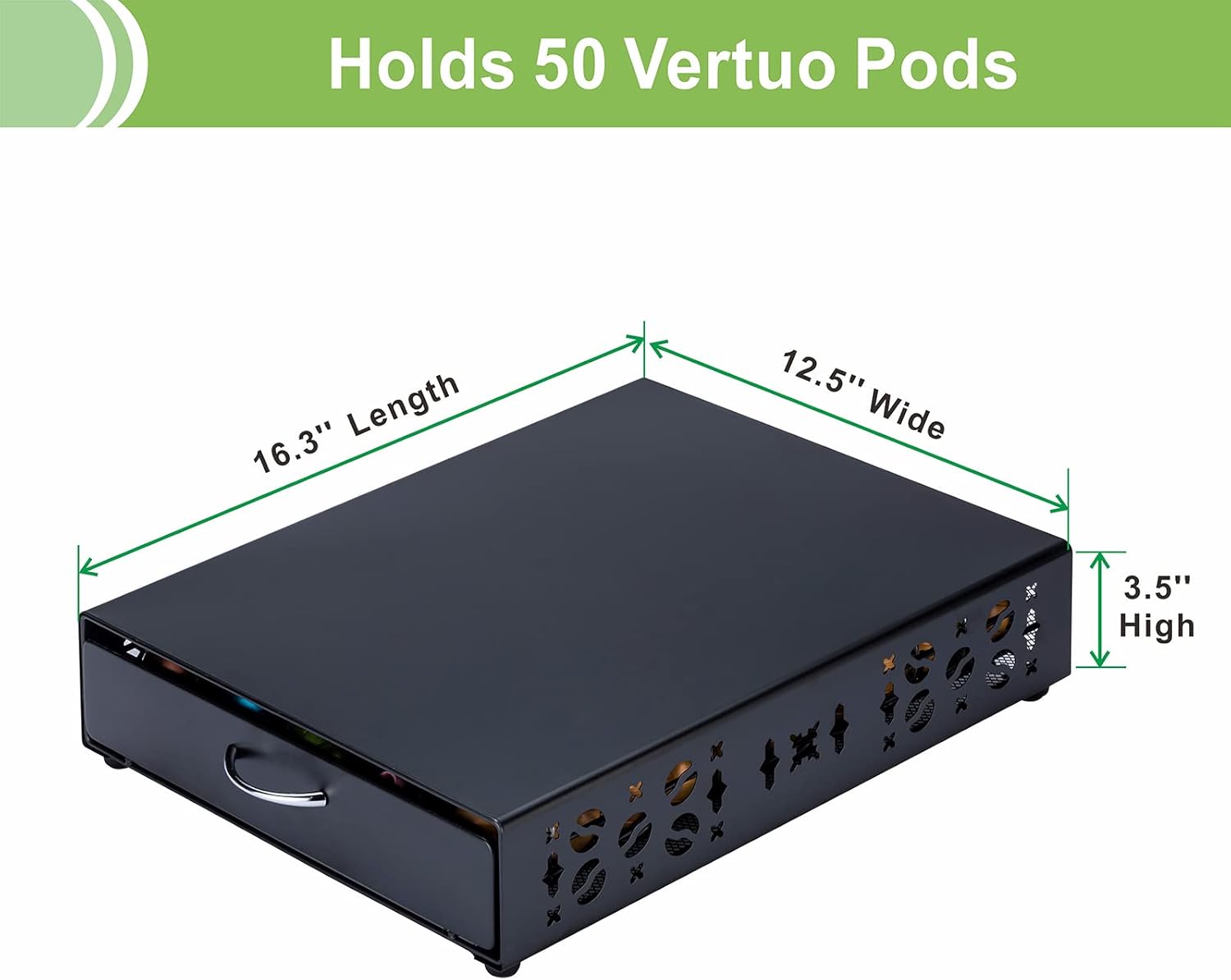 - WIDE COMPATIBILITY - The size of the coffee pod holder storage drawer is about 16.3"L * 12.5"W * 3.5"H. You can place vertuo pod drawer with different flavors to meet the needs of different moods. Also it can be a christmas gift for your lovers, family, friends and so on.
