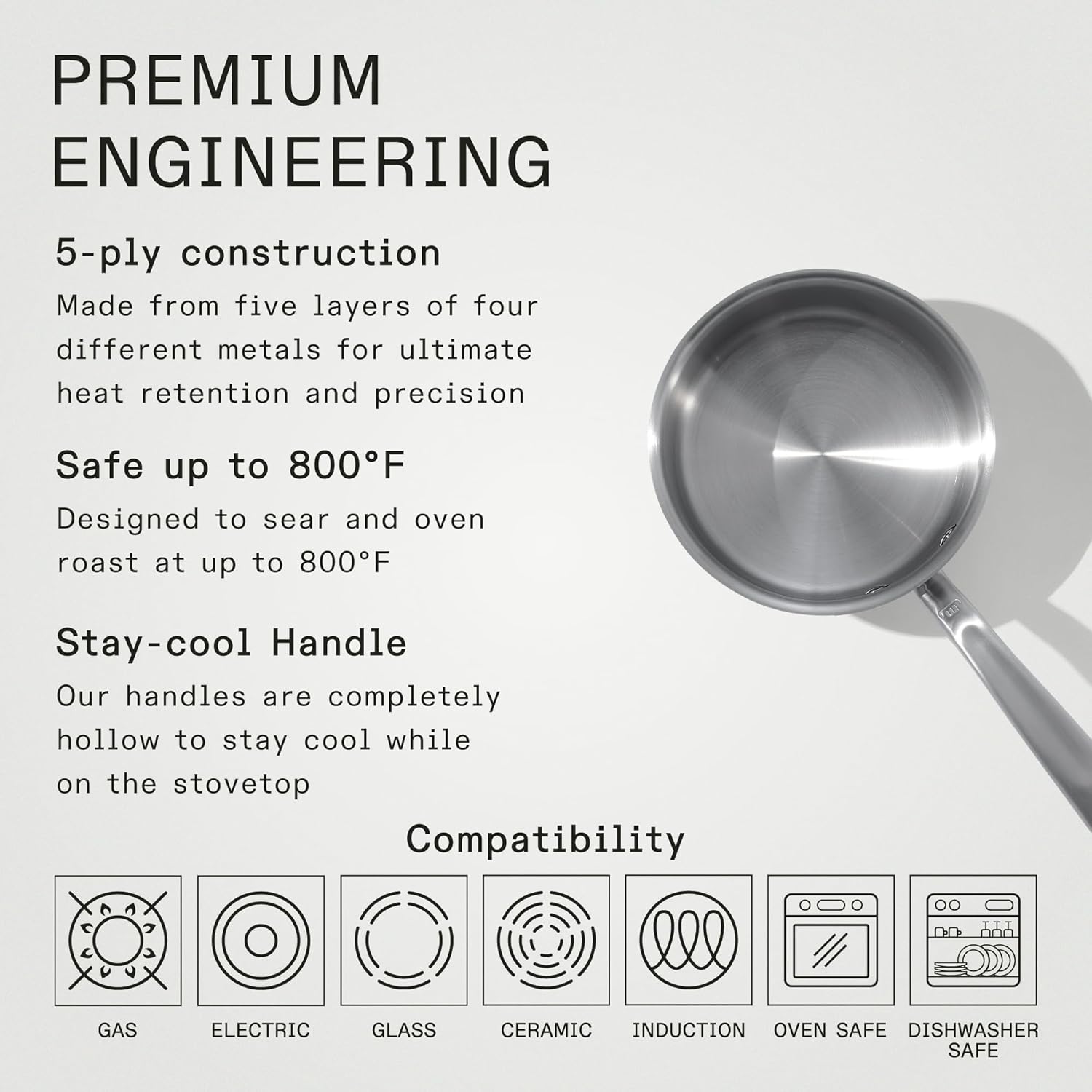 Made In Cookware - 2 Quart Saucepan with Lid - Stainless Clad 5 Ply Construction - Induction Compatible - Professional Cookware - Made in Italy