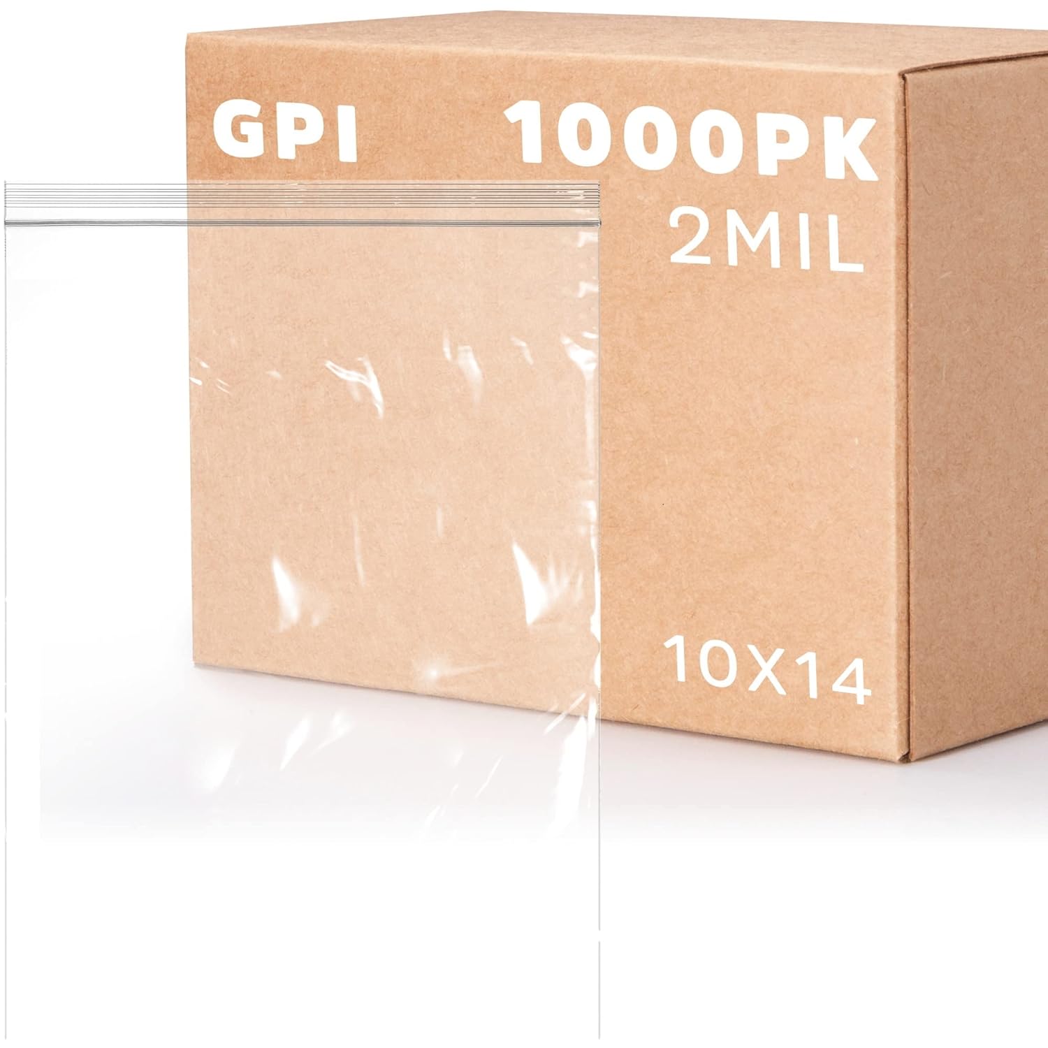 GPI - 10" x 14", Case of 1000, Clear Plastic Reclosable Zip Bags, 2 Mil Thick, Zip Poly Bags with Resealable Lock Seal Zipper For Food, Apparel, Shirts, Household, School & Office Supplies