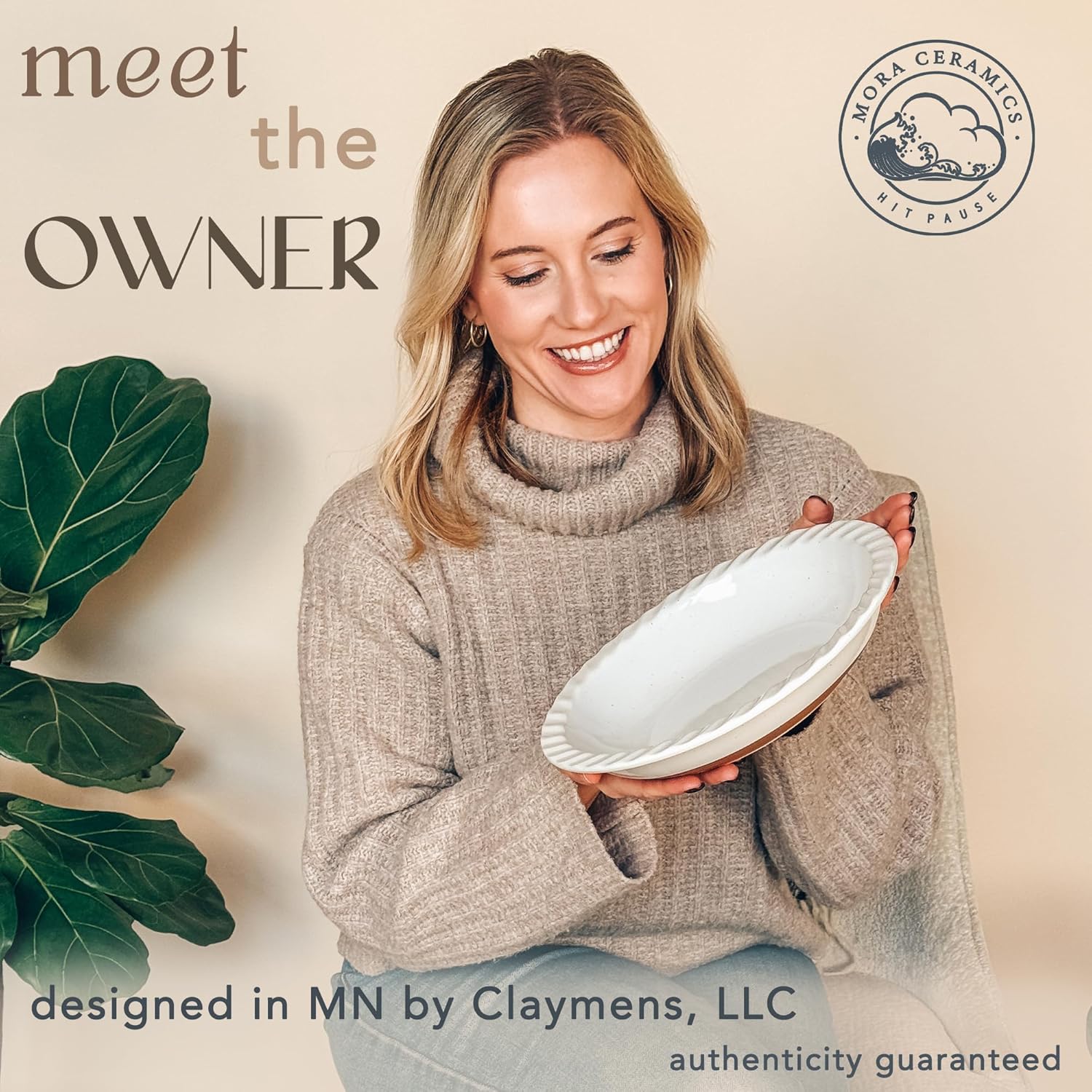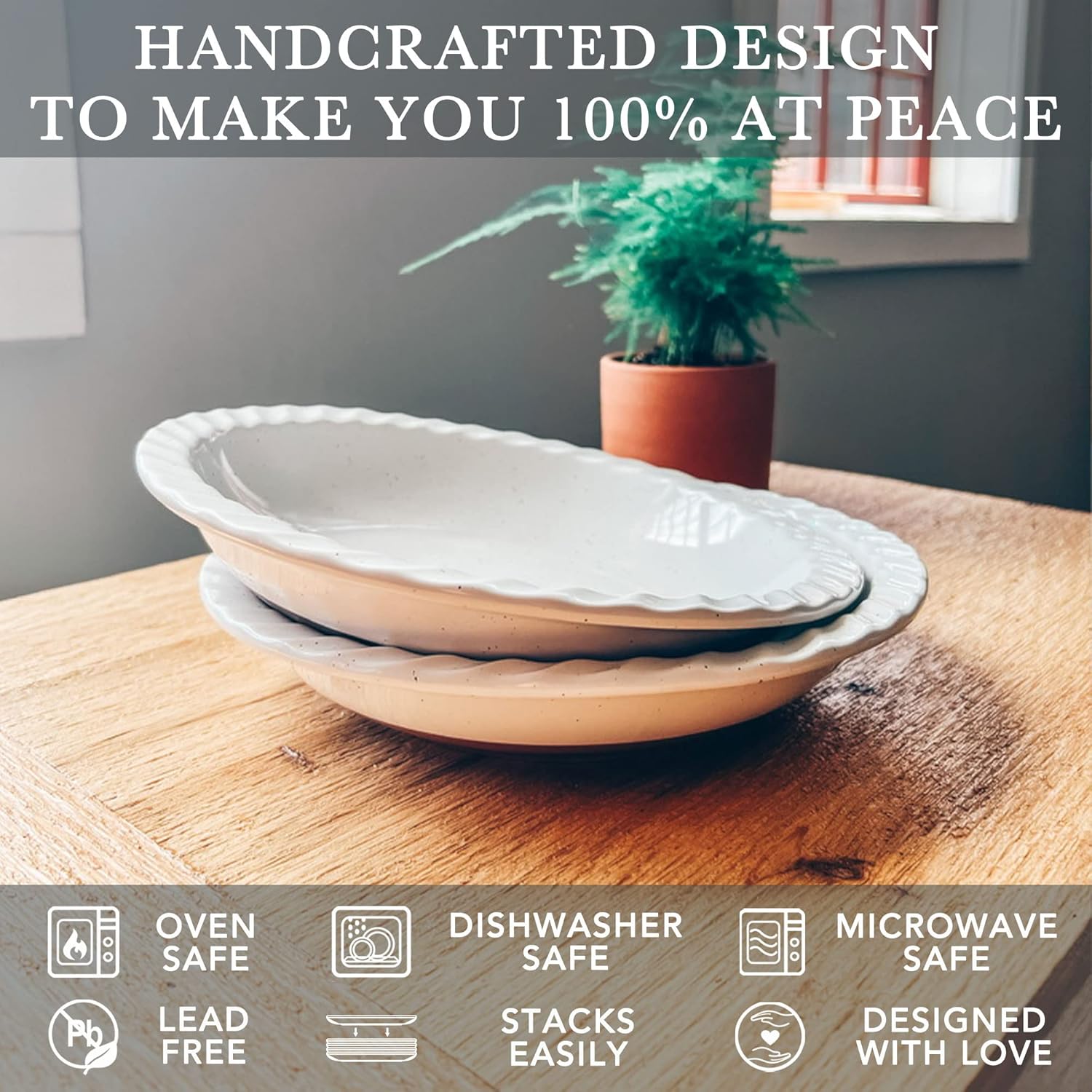 Mora Ceramic Classic 9 Inch Pie Pan Set of 2 - Round Pie Plate for Baking Apple/Pumpkin Pies, Quiche, Rolls, etc. Dishwasher and Oven Safe Dishes, Shallow Pans for Original Recipes - Vanilla White