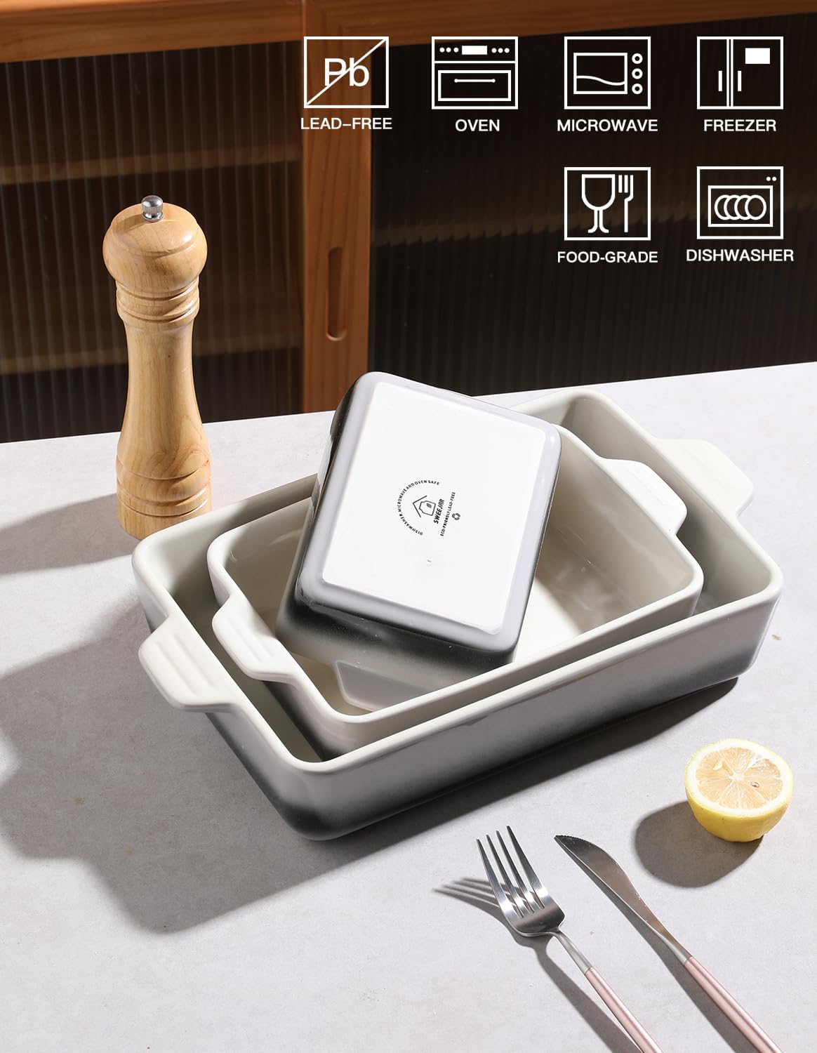 Sweejar Ceramic Bakeware Set, Rectangular Baking Dish for Oven Lasagna Pans for Cooking, Kitchen, Cake Dinner, Banquet and Daily Use, 11.8 x 7.8 x 2.76 Inches of Casserole Dishes (Gradient Gray)