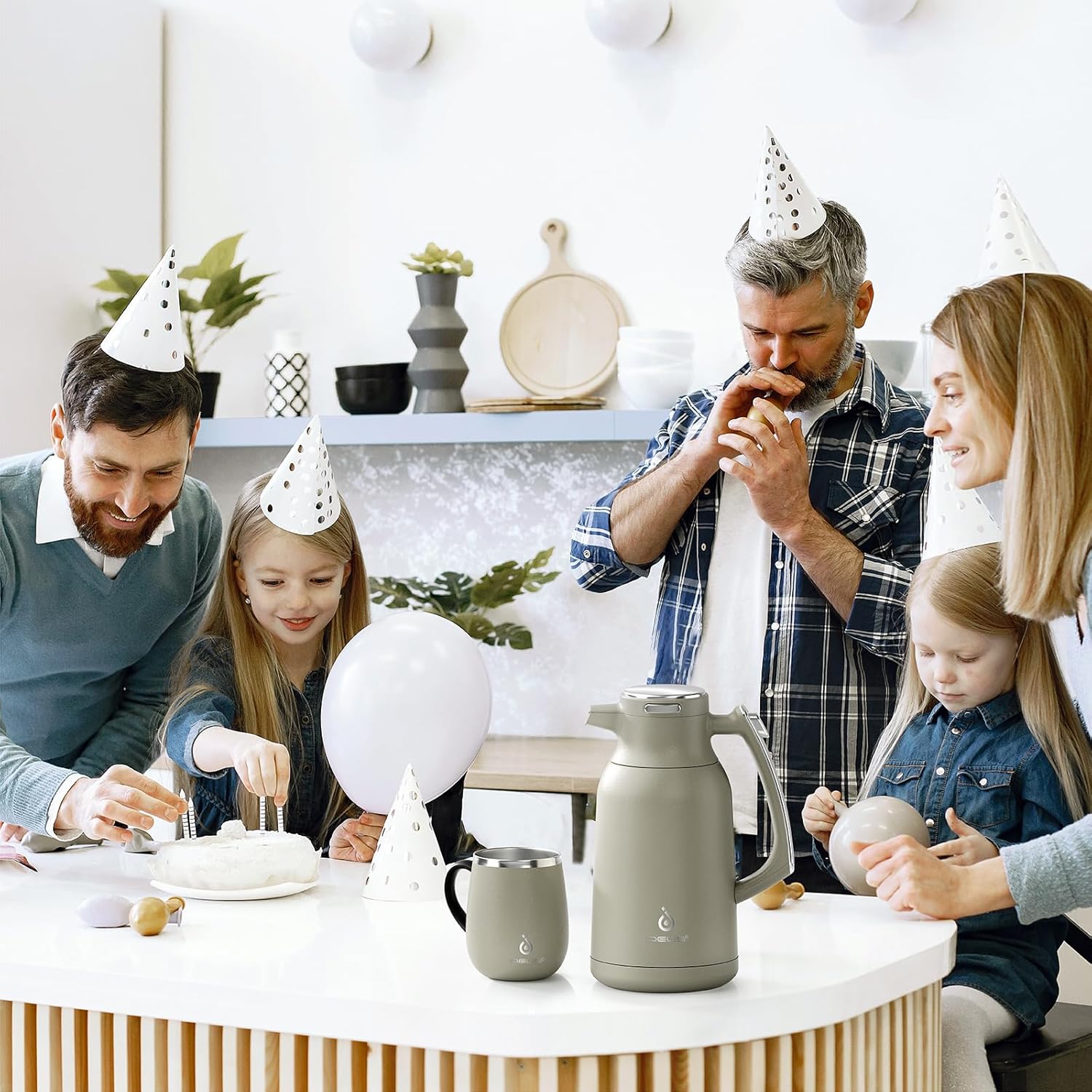 IDEUS Thermal Coffee Carafe 68oz (2,000ml), Stainless Steel Double Wall Insulated Vacuum Flask, Water Jug Coffee Server and Beverage Dispenser, Heat and Cold Retention (Celadon, 68oz (2,000ml))