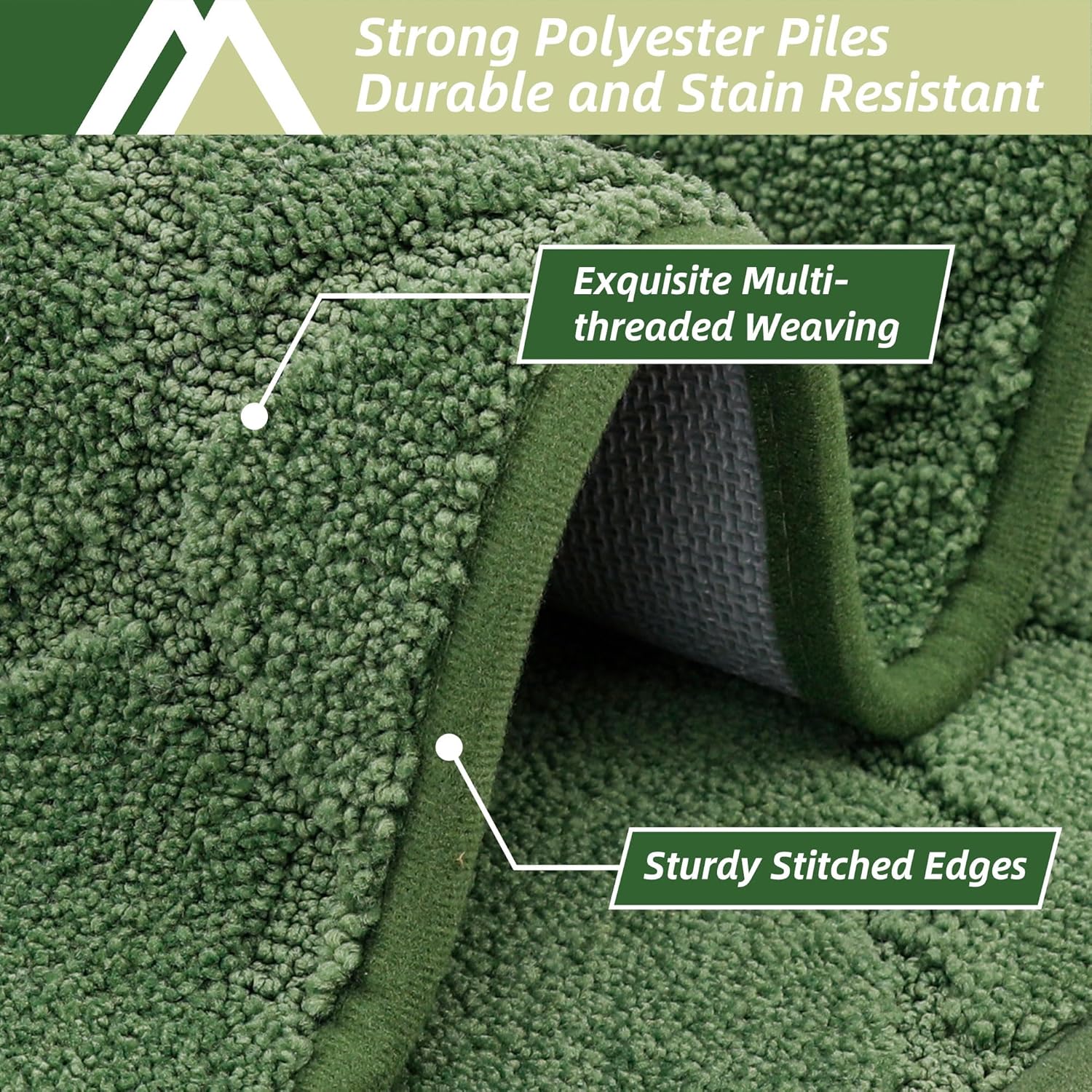 COSY HOMEER Soft Kitchen Rugs [2 PCS] for in Front of Sink Super Absorbent Kitchen Floor Mats and Mats 24x35 Inch/24X60 Non-Skid Kitchen Mat Standing Mat Washable,Polyester,Green