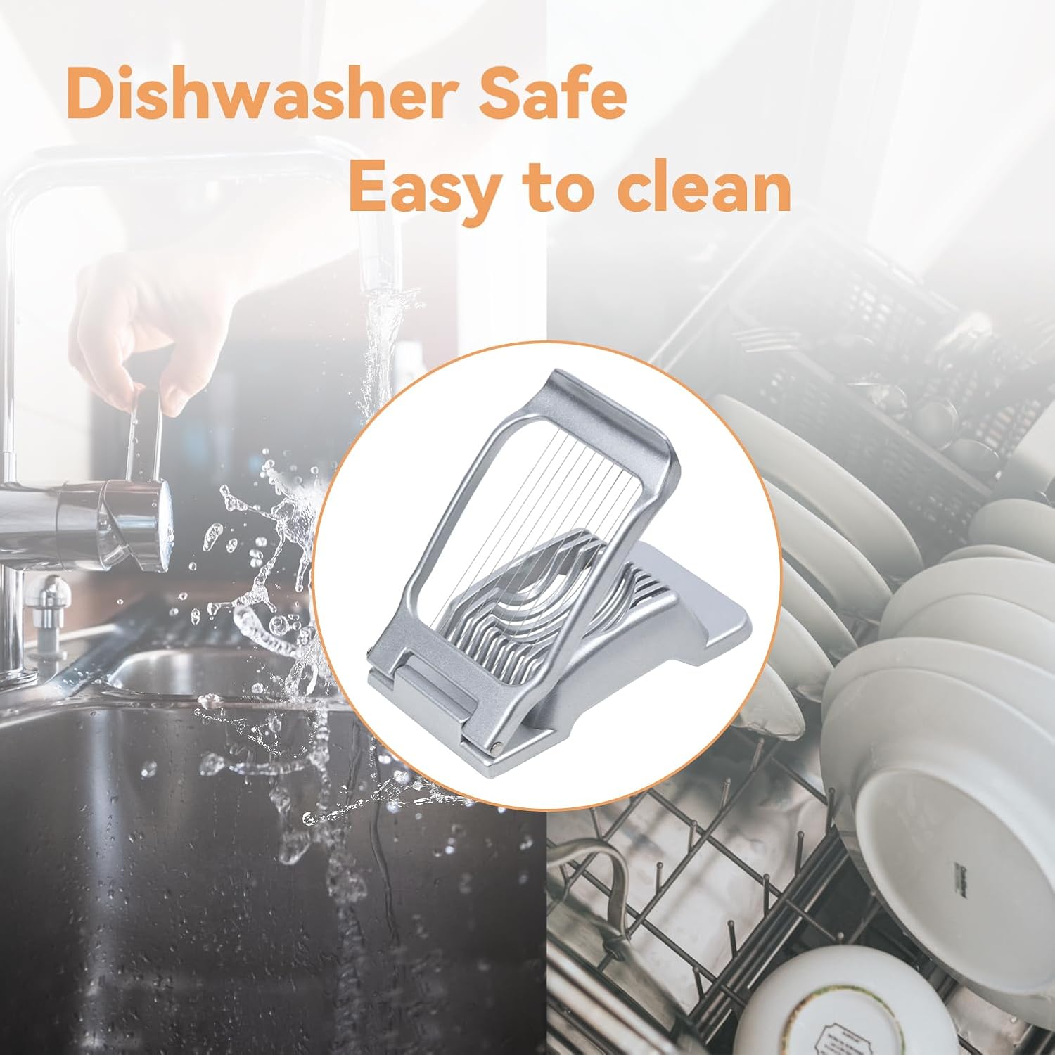 - Easy to clean, dishwasher safe or you can rinse the egg slicer with water.