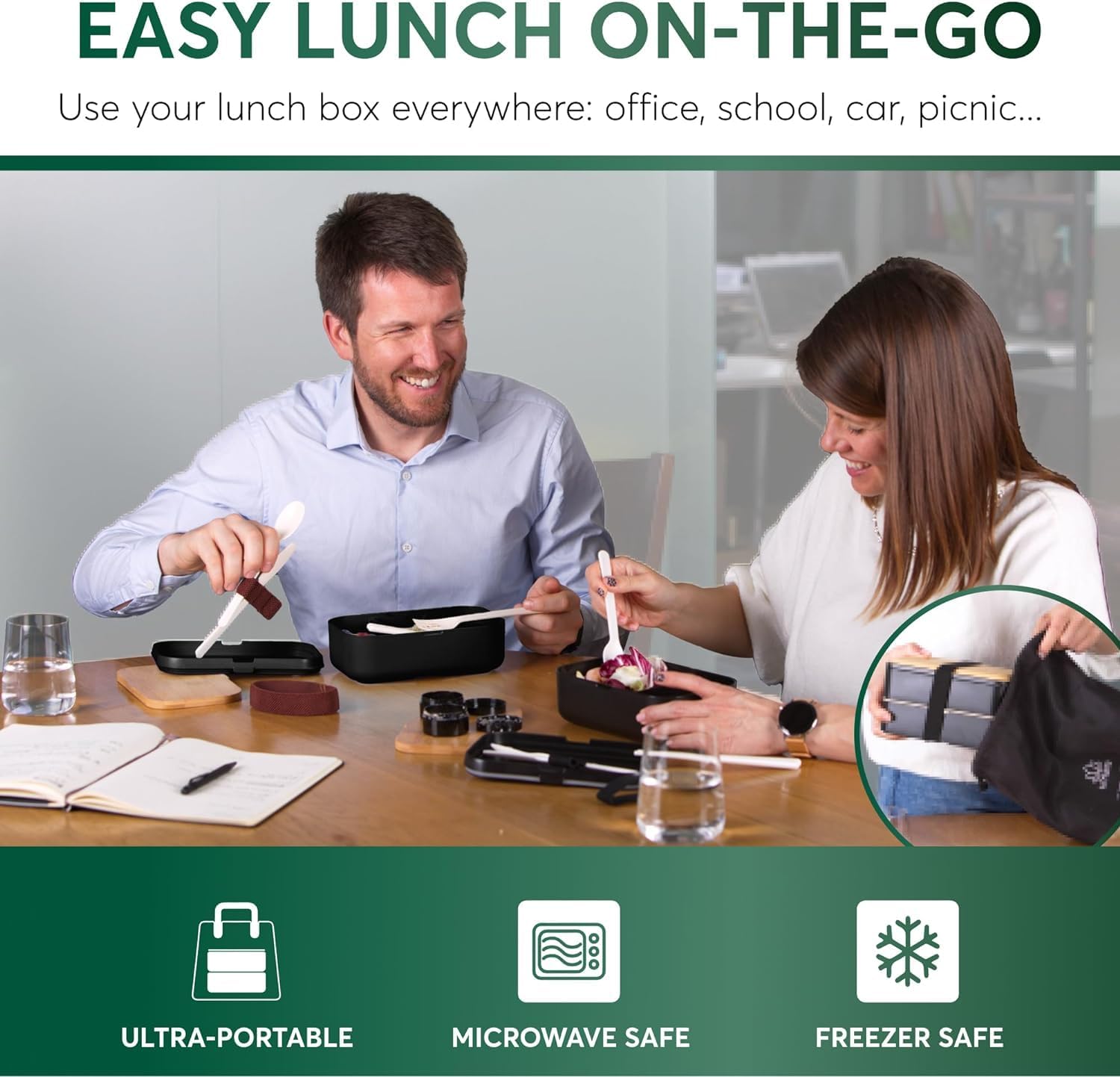 - CUTLERY & CHOPSTICKS INCLUDED - Like a restaurant in your pocket, the cutlery set makes lunch on-the-go effortless. The bento lunch box includes a knife, fork, spoon, and chopsticks, perfect accessories for your convenience.
