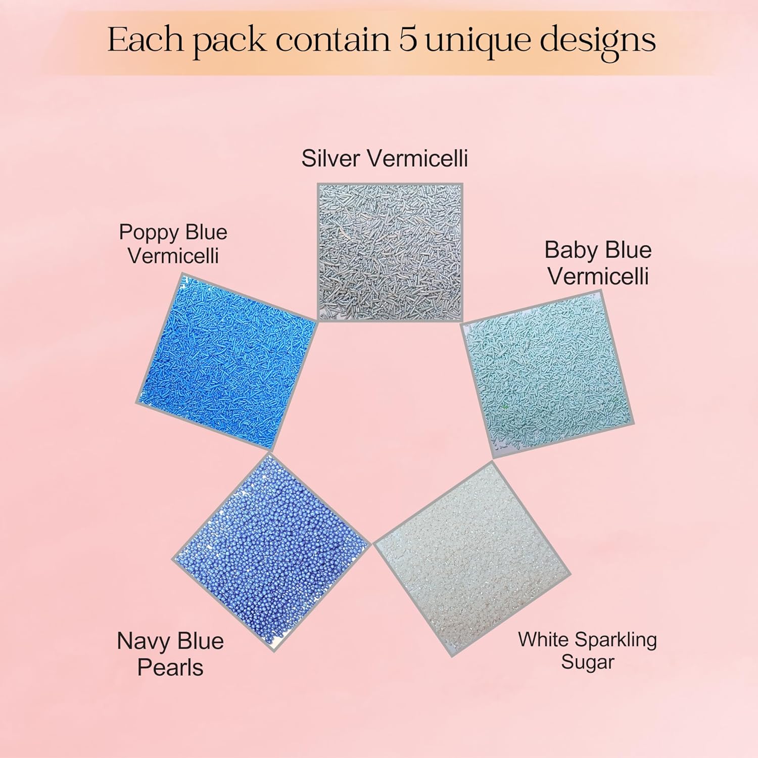 Confect Blue Sprinkles Mix – 5 Shades of Blue with Navy Dragees, Silver, Baby Blue Jimmies & White Sparkling Sugar | Edible Sprinkles for Cakes, Cupcakes & Baking | Vegan, Gluten-Free, Nut-Free, Soy-Free, Dairy-Free, Palm Oil-Free- 5 Oz