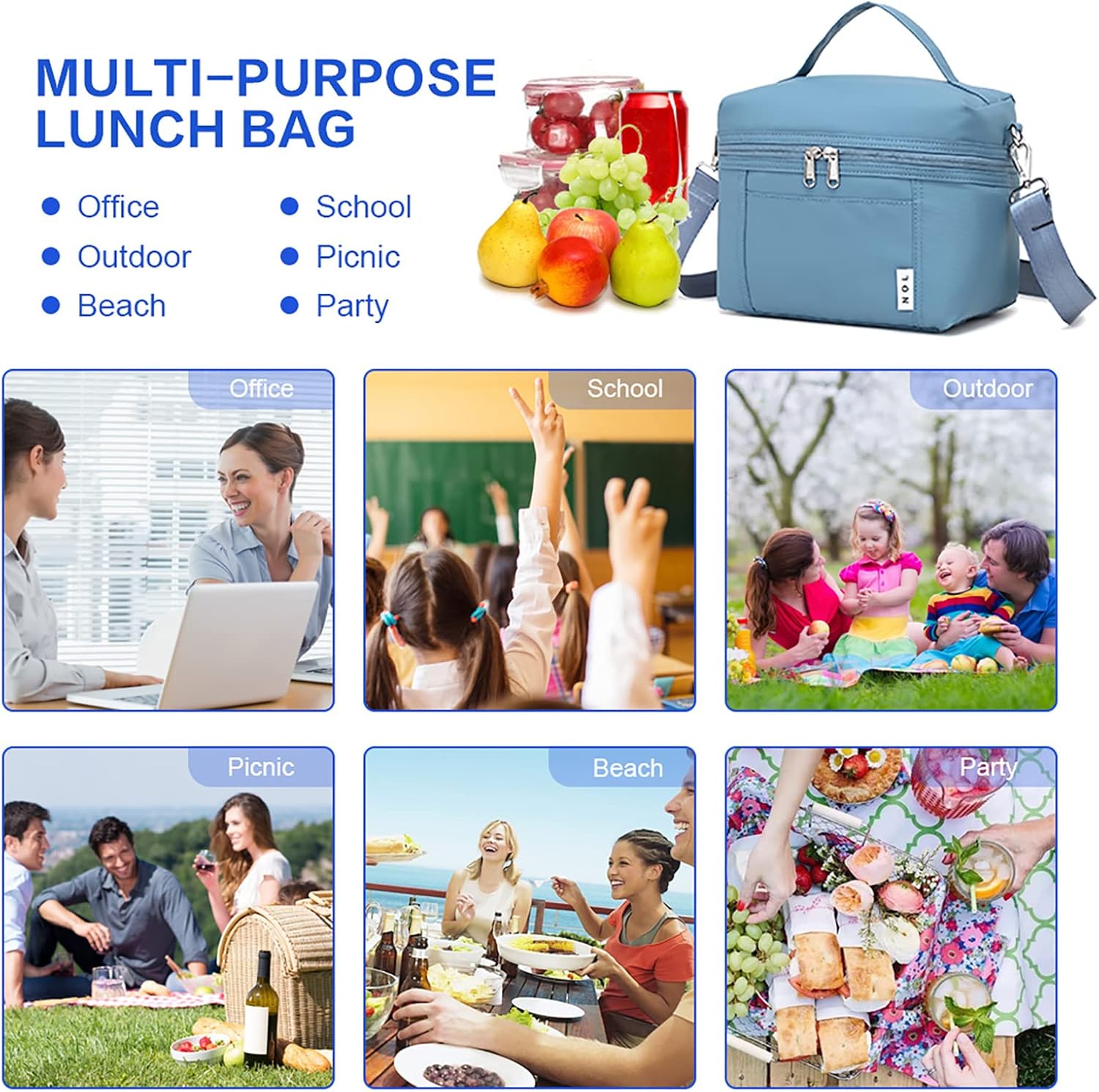 NOL Natural Organic Lifestyle Insulated Lunch Bags for Women Cooler Bag Lightweight Nylon Waterproof Lunch Box For Work
